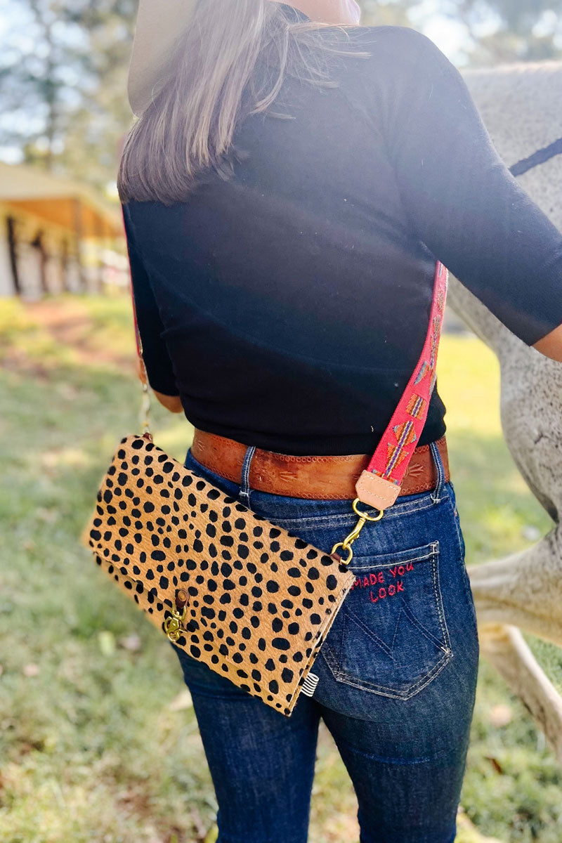 Cheetah Hair on Hide Leather Foldover Clutch & Crossbody