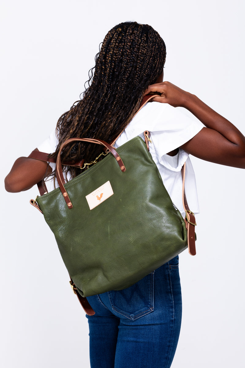 Hunter Green Leather Convertible Backpack 2.0