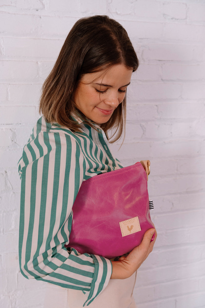 Pink Leather Foldover Clutch & Crossbody