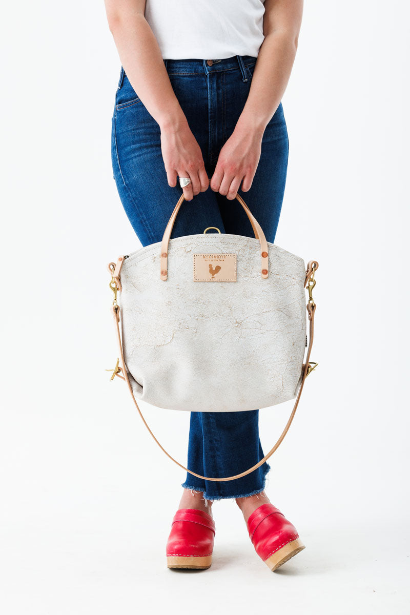 A uniquely beautiful and ever-evolving leather, Birch White Leather is distressed using an ancient hand-processing technique. No two bags are the same, the color variations and textured feel enrich the personality of each bag. As you use your Birch Leather, it will darken and flake giving it an amazing vintage feel that in no way changes the integrity of the leather.