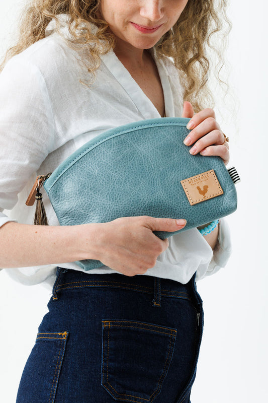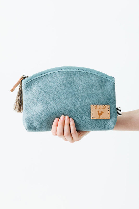 Seafoam Leather Cosmetic Bag
