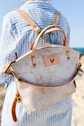 A smaller, tote-style backpack, the convertible Backpack 2.0 is a 3-in-1 wonder. You get perfect functionality with the backpack's removable/adjustable straps or carry as a hand tote and yes, even a crossbody bag...simplifying travel life, mom life, and an adventurous life.