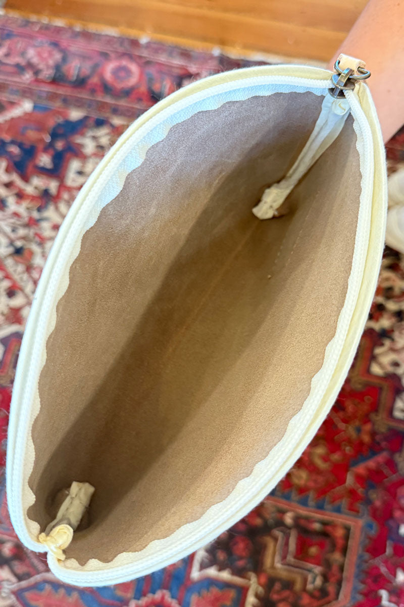 Less is more when it comes to cleaning your leather bag or canvas bag. Simply blot the undesired spot immediately with a dry white cloth to absorb the moisture. Avoid rubbing. If needed, mix mild dish soap with water (3:1 ratio) to blot the area. Keep in mind, the stain will look its worst on the day of the incident, but over time, the stain will disperse through the protein fibers and become part of the beautiful worn in look.