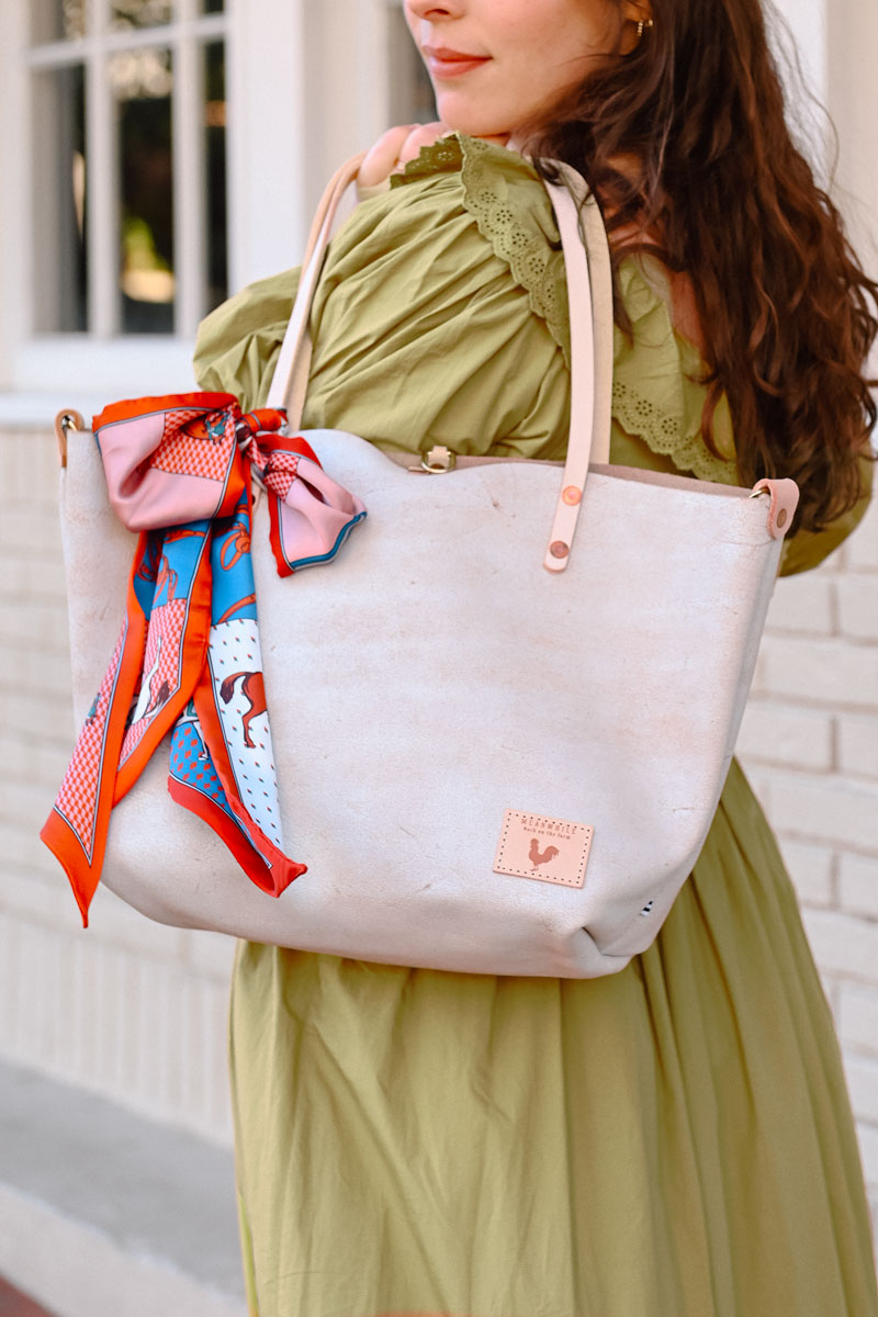 Less is more when it comes to cleaning your leather bag or canvas bag. Simply blot the undesired spot immediately with a dry white cloth to absorb the moisture. Avoid rubbing. If needed, mix mild dish soap with water (3:1 ratio) to blot the area. Keep in mind, the stain will look its worst on the day of the incident, but over time, the stain will disperse through the protein fibers and become part of the beautiful worn in look.