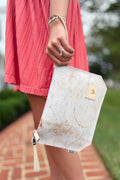 Less is more when it comes to cleaning your leather bag or canvas bag. Simply blot the undesired spot immediately with a dry white cloth to absorb the moisture. Avoid rubbing. If needed, mix mild dish soap with water (3:1 ratio) to blot the area. Keep in mind, the stain will look its worst on the day of the incident, but over time, the stain will disperse through the protein fibers and become part of the beautiful worn in look.