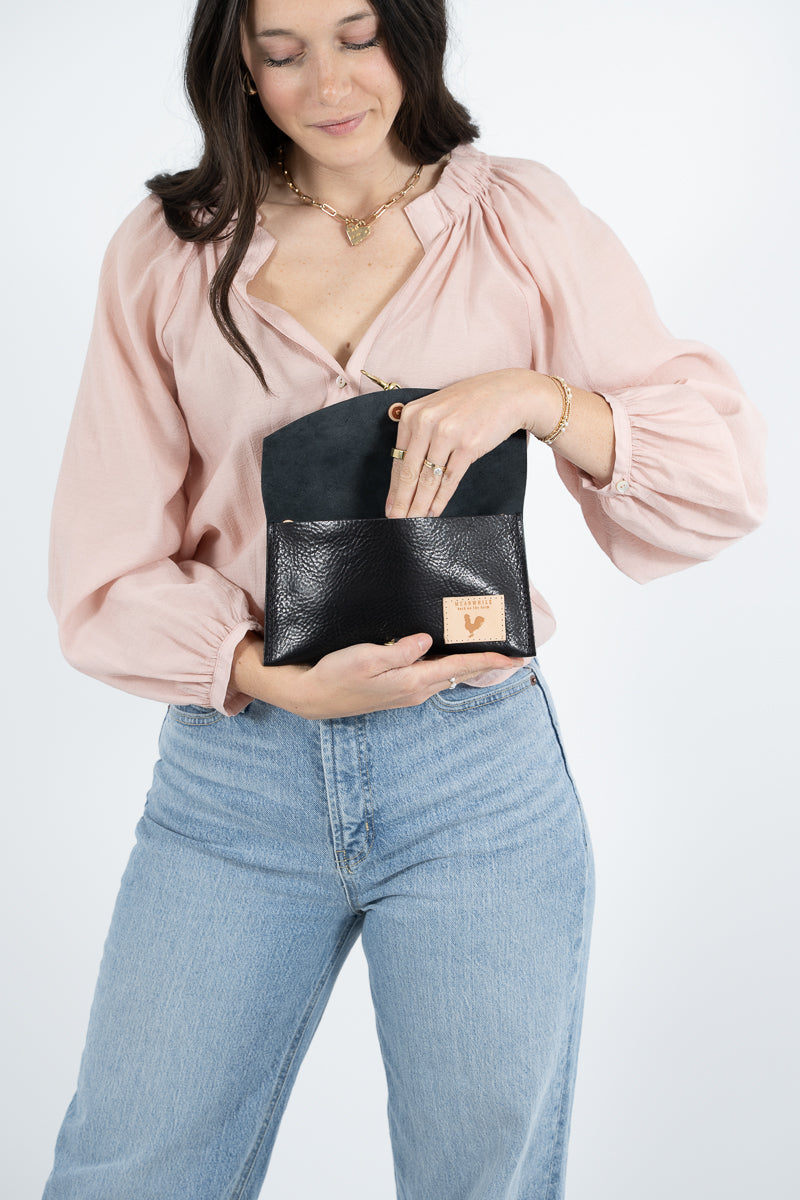 Less is more when it comes to cleaning your leather bag or canvas bag. Simply blot the undesired spot immediately with a dry white cloth to absorb the moisture. Avoid rubbing. If needed, mix mild dish soap with water (3:1 ratio) to blot the area. Keep in mind, the stain will look its worst on the day of the incident, but over time, the stain will disperse through the protein fibers and become part of the beautiful worn in look.