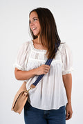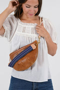 shoulder bag within minutes. Colorful woven webbing, leather trim, and brass snap hooks.