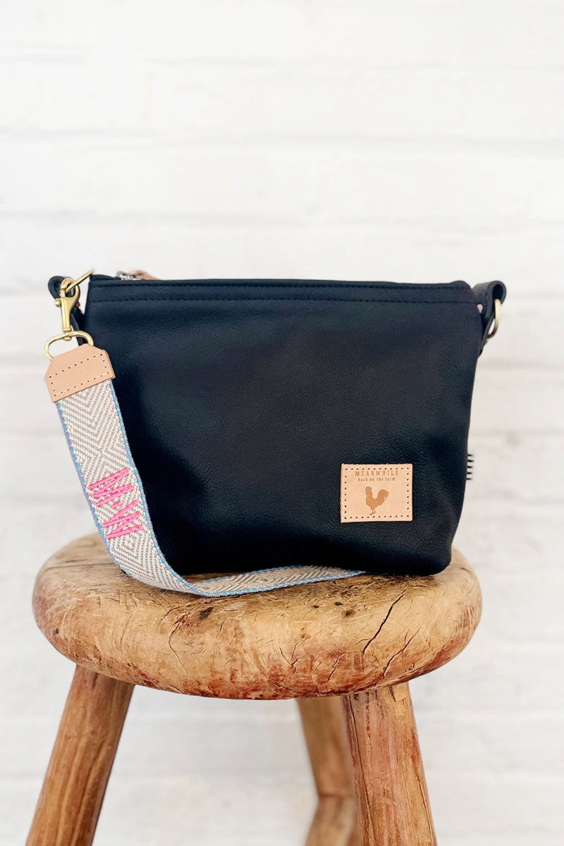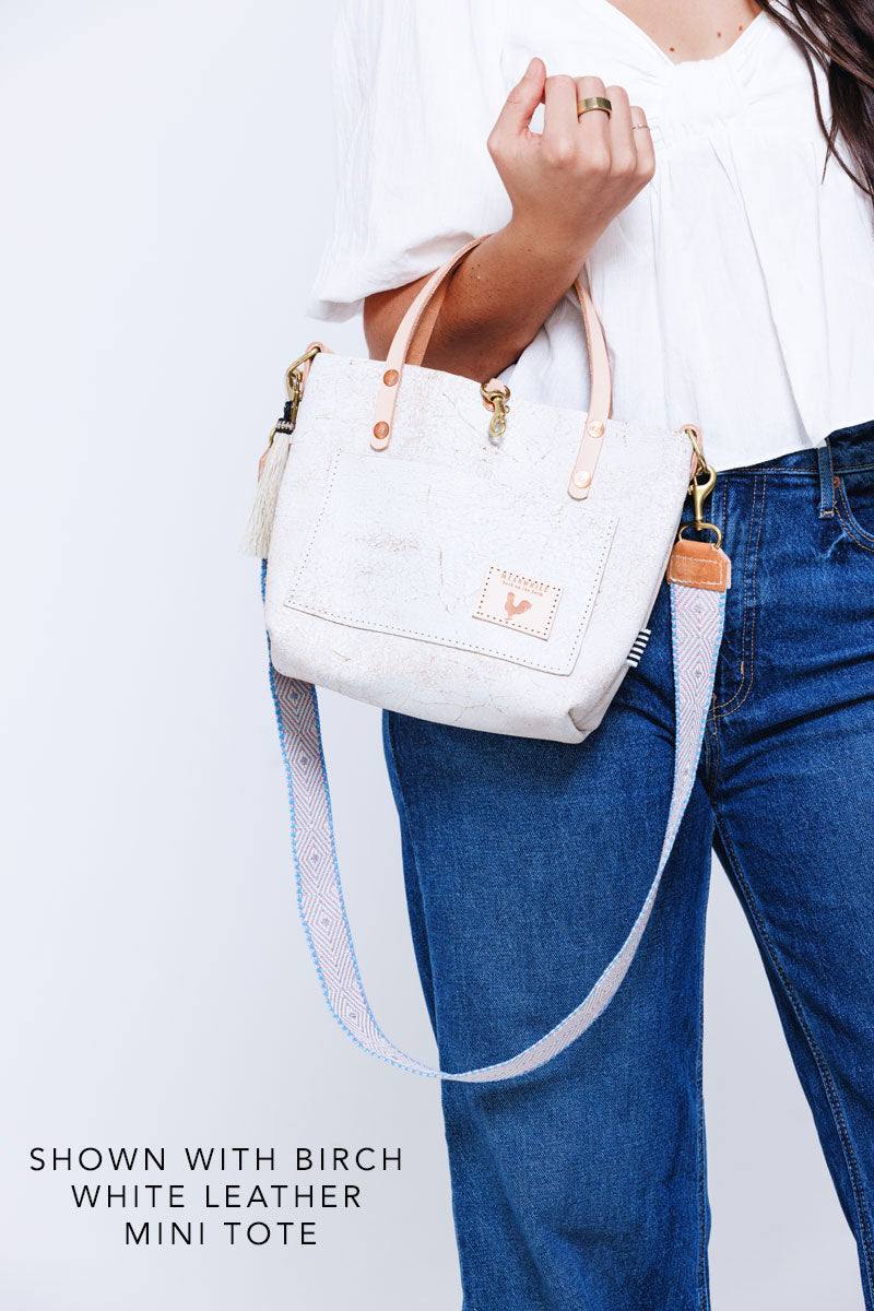shoulder bag within minutes. Colorful woven webbing, leather trim, and brass snap hooks.