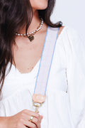 - 1.5" wide Italian webbing strap: Bubblegum (cream, pink and blue)