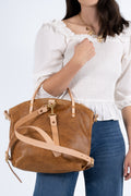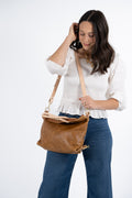 *Camel leather offers a soft and subtle feel while giving you a unique vintage meets modern look. This beautiful tipped-grain leather is achieved naturally by being milled during the tanning process, giving the leather a striking color contrast in the peaks and valleys across the leather's surface. Natural markings throughout the leather make each bag unique.