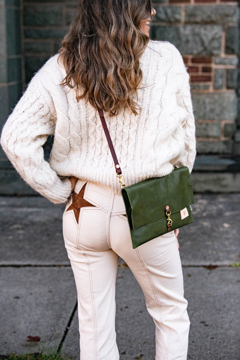 Less is more when it comes to cleaning your leather bag or canvas bag. Simply blot the undesired spot immediately with a dry white cloth to absorb the moisture. Avoid rubbing. If needed, mix mild dish soap with water (3:1 ratio) to blot the area. Keep in mind, the stain will look its worst on the day of the incident, but over time, the stain will disperse through the protein fibers and become part of the beautiful worn in look.
