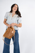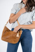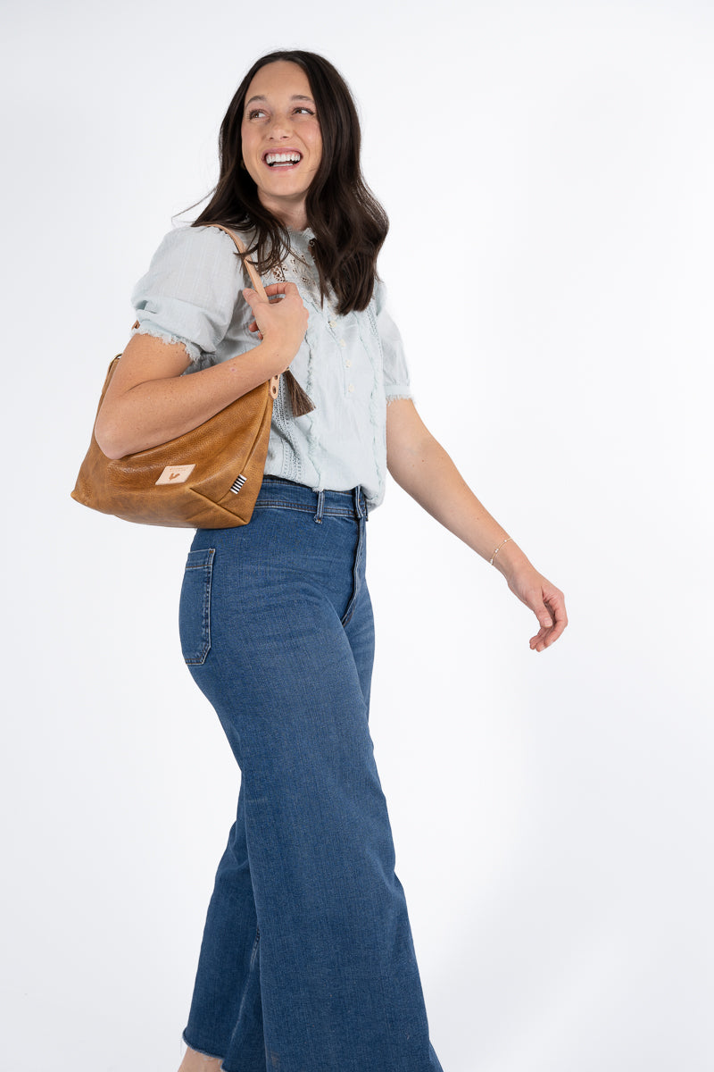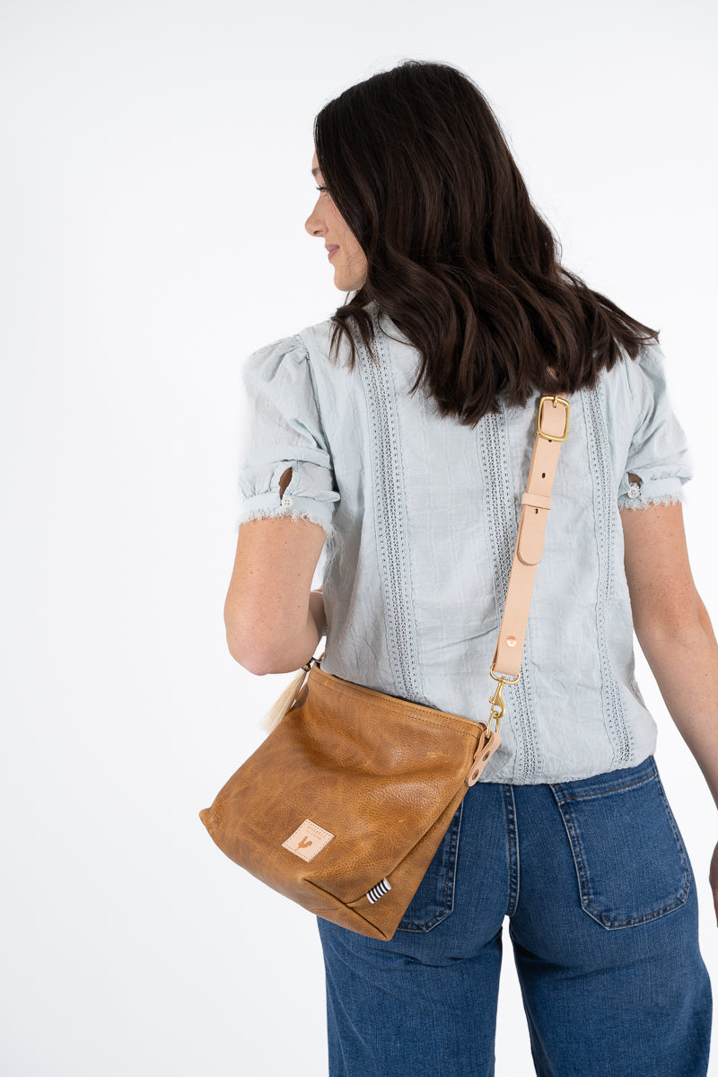*Camel leather offers a soft and subtle feel while giving you a unique vintage meets modern look. This beautiful tipped-grain leather is achieved naturally by being milled during the tanning process, giving the leather a striking color contrast in the peaks and valleys across the leather's surface. Natural markings throughout the leather make each bag unique.