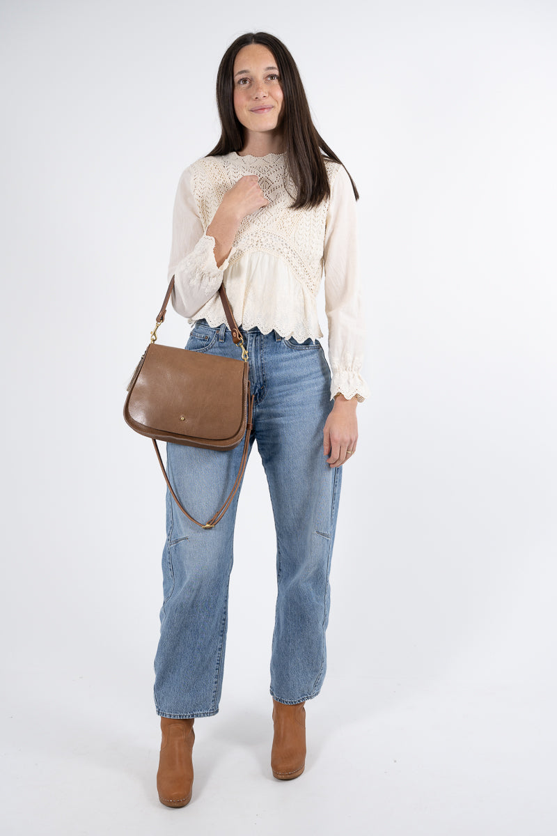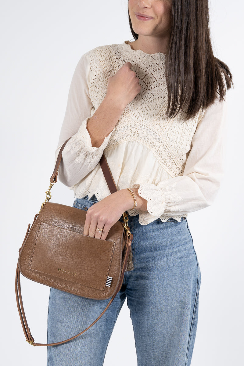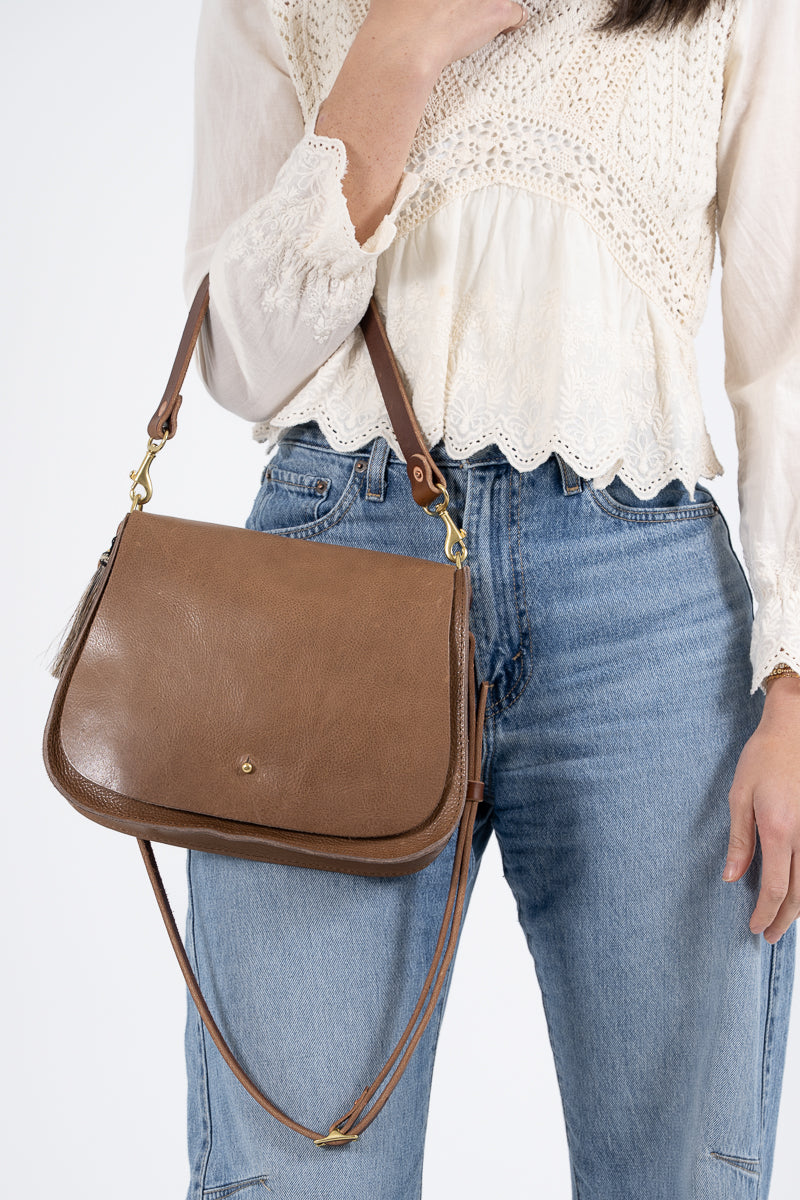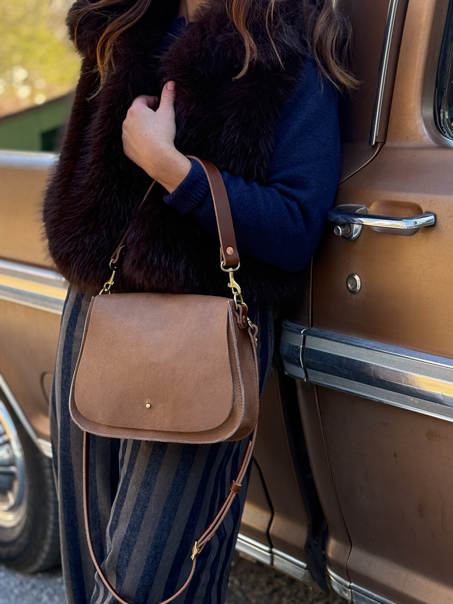 Less is more when it comes to cleaning your leather bag or canvas bag. Simply blot the undesired spot immediately with a dry white cloth to absorb the moisture. Avoid rubbing. If needed, mix mild dish soap with water (3:1 ratio) to blot the area. Keep in mind, the stain will look its worst on the day of the incident, but over time, the stain will disperse through the protein fibers and become part of the beautiful worn in look.