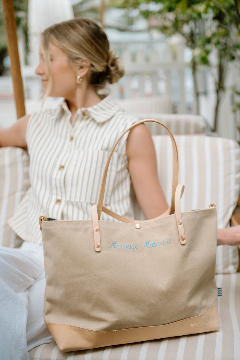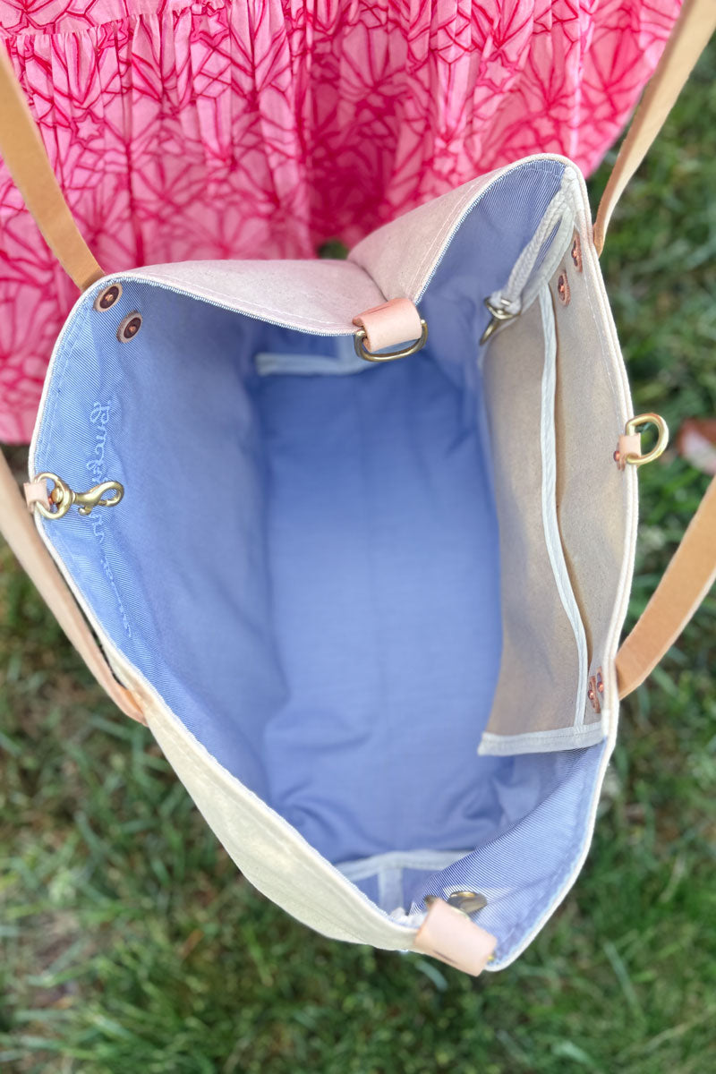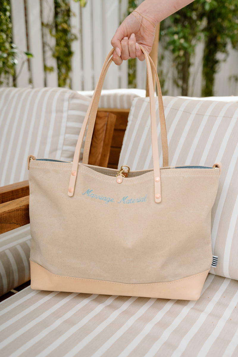 Virginia leather is an all-natural, vegetable-tanned Italian leather known for its smooth finish and beautiful organic character. Each hide carries its own markings and color nuances, beginning with a soft, pale nude hue that gradually deepens with age, use, and sunlight—developing a rich, darker patina that makes every bag uniquely yours. You’ll find yourself loving it more and more each time you reach for it.