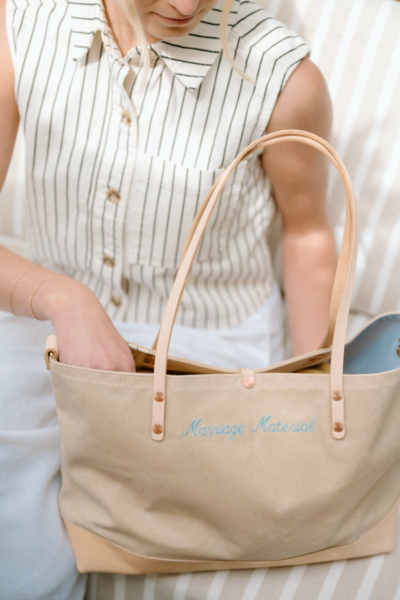 Less is more when it comes to cleaning your leather bag or canvas bag. Simply blot the undesired spot immediately with a dry white cloth to absorb the moisture. Avoid rubbing. If needed, mix mild dish soap with water (3:1 ratio) to blot the area. Keep in mind, the stain will look its worst on the day of the incident, but over time, the stain will disperse through the protein fibers and become part of the beautiful worn in look.