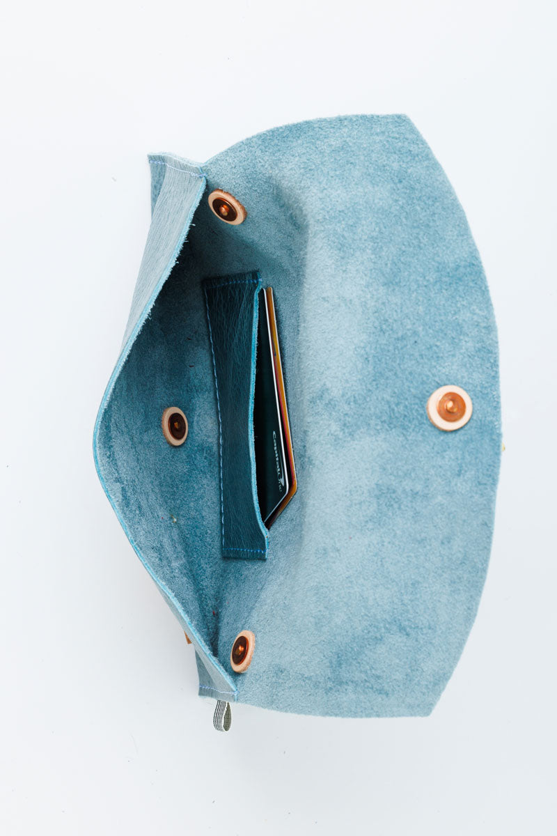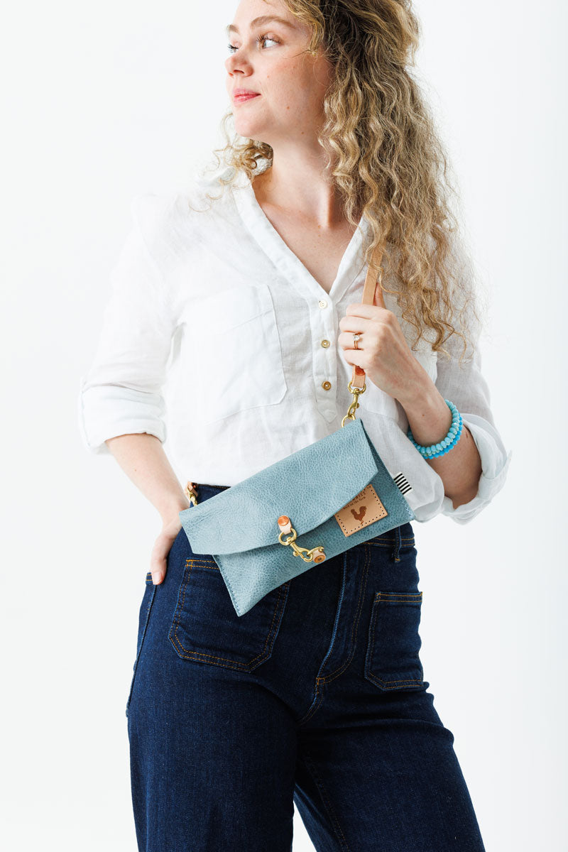 Dusty Blue Leather Envelope Clutch & Crossbody