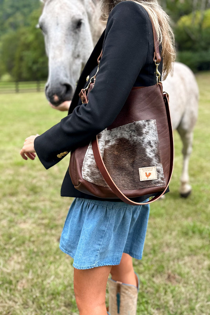 *Hair On Hide leather is exactly that—cowhide with the hair left intact. Soft, supple, and full of character, each hide showcases its natural markings, ensuring that no two are alike. Every bag is a one-of-a-kind creation, blending beauty and individuality.