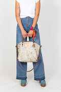 *Hair On Hide leather is exactly that—cowhide with the hair left intact. Soft, supple, and full of character, each hide showcases its natural markings, ensuring that no two are alike. Every bag is a one-of-a-kind creation, blending beauty and individuality.