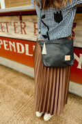 Less is more when it comes to cleaning your leather bag or canvas bag. Simply blot the undesired spot immediately with a dry white cloth to absorb the moisture. Avoid rubbing. If needed, mix mild dish soap with water (3:1 ratio) to blot the area. Keep in mind, the stain will look its worst on the day of the incident, but over time, the stain will disperse through the protein fibers and become part of the beautiful worn in look.