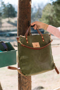 Less is more when it comes to cleaning your leather bag or canvas bag. Simply blot the undesired spot immediately with a dry white cloth to absorb the moisture. Avoid rubbing. If needed, mix mild dish soap with water (3:1 ratio) to blot the area. Keep in mind, the stain will look its worst on the day of the incident, but over time, the stain will disperse through the protein fibers and become part of the beautiful worn in look.