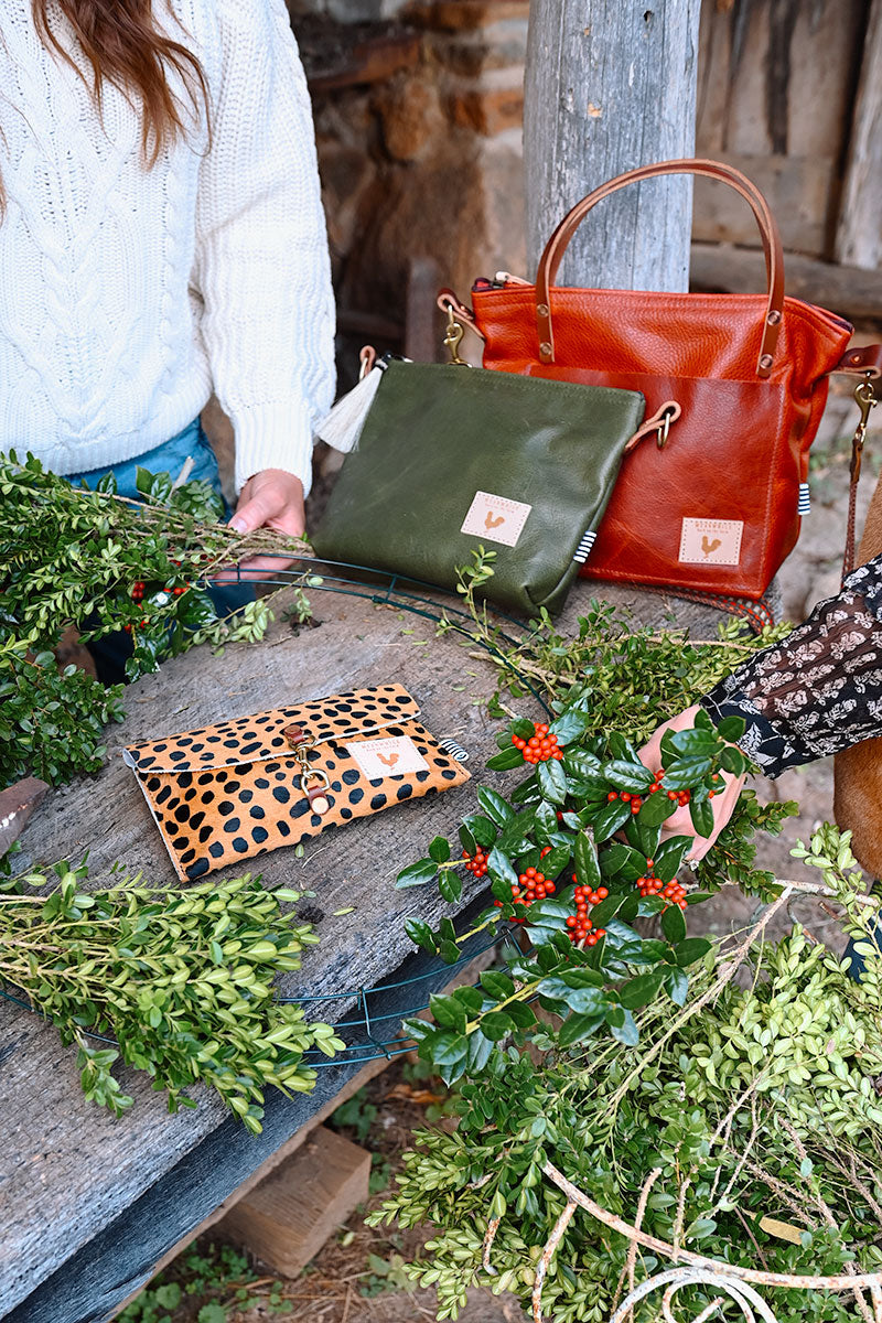Less is more when it comes to cleaning your leather bag or canvas bag. Simply blot the undesired spot immediately with a dry white cloth to absorb the moisture. Avoid rubbing. If needed, mix mild dish soap with water (3:1 ratio) to blot the area. Keep in mind, the stain will look its worst on the day of the incident, but over time, the stain will disperse through the protein fibers and become part of the beautiful worn in look.