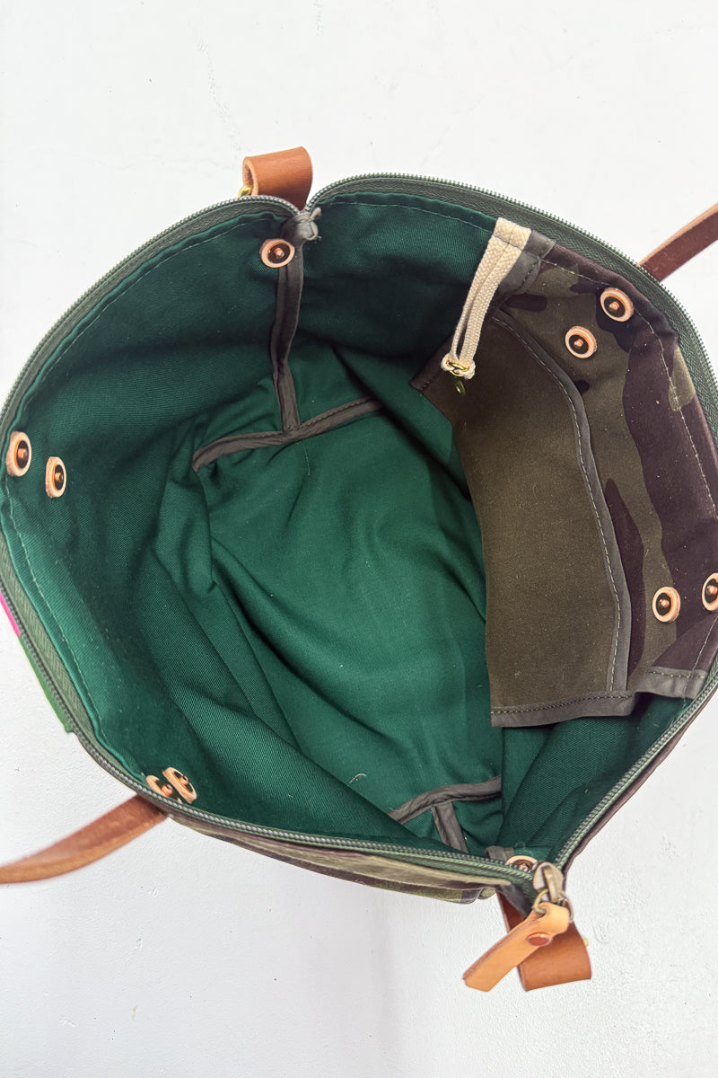 *Waxed Canvas: The canvas is treated with waxes and oils from a multi-generational formula. This treatment affords the fabric a lifelong resistance to inclement weather and everyday use. The canvas will age and function similarly to leather. Its waxes will move around the bag, creating character.