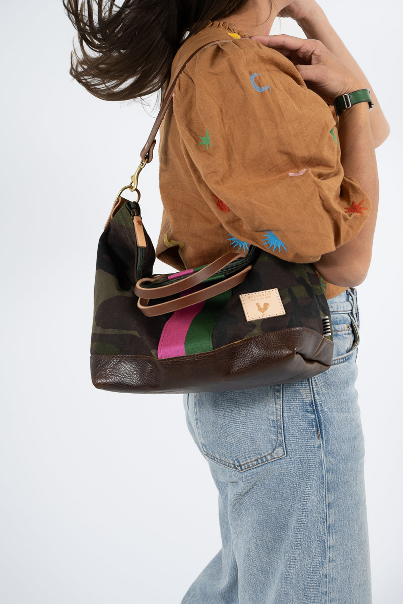 Less is more when it comes to cleaning your leather bag or canvas bag. Simply blot the undesired spot immediately with a dry white cloth to absorb the moisture. Avoid rubbing. If needed, mix mild dish soap with water (3:1 ratio) to blot the area. Keep in mind, the stain will look its worst on the day of the incident, but over time, the stain will disperse through the protein fibers and become part of the beautiful worn in look.