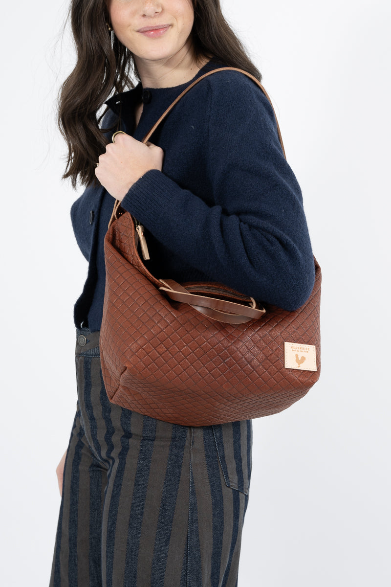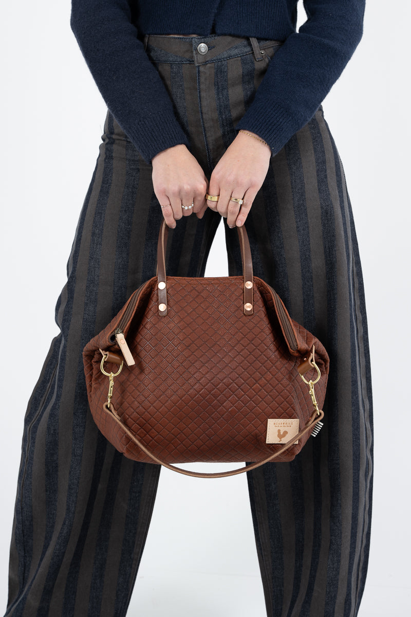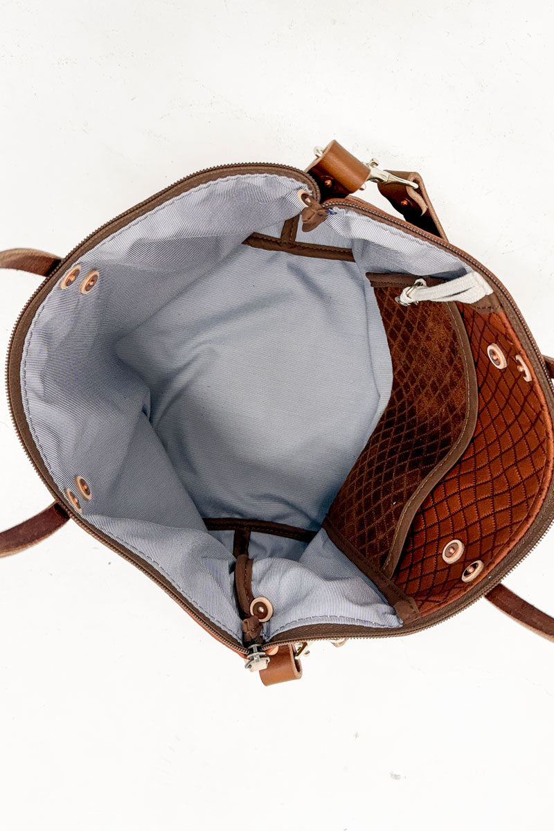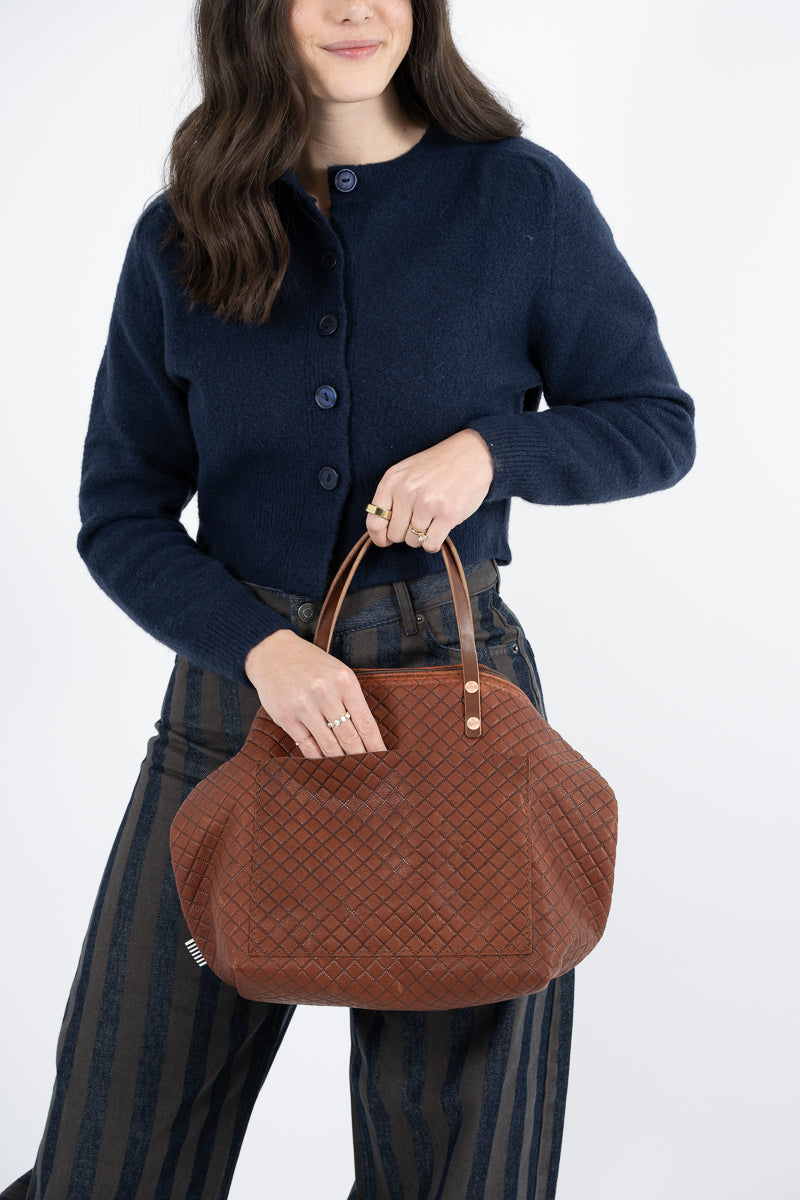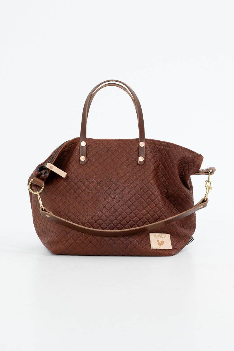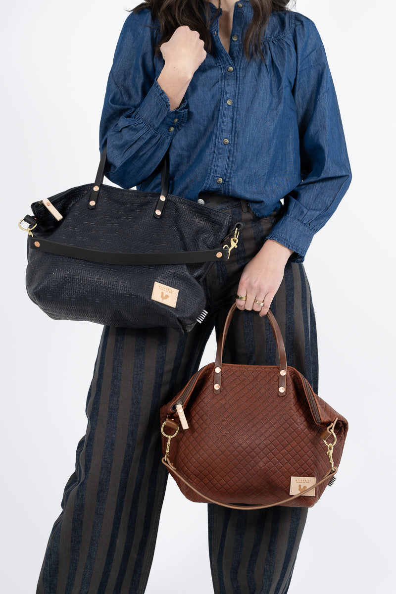Less is more when it comes to cleaning your leather bag or canvas bag. Simply blot the undesired spot immediately with a dry white cloth to absorb the moisture. Avoid rubbing. If needed, mix mild dish soap with water (3:1 ratio) to blot the area. Keep in mind, the stain will look its worst on the day of the incident, but over time, the stain will disperse through the protein fibers and become part of the beautiful worn in look.