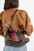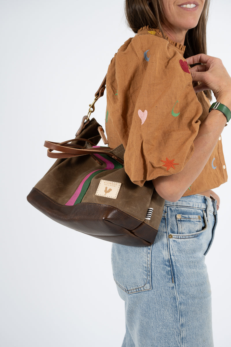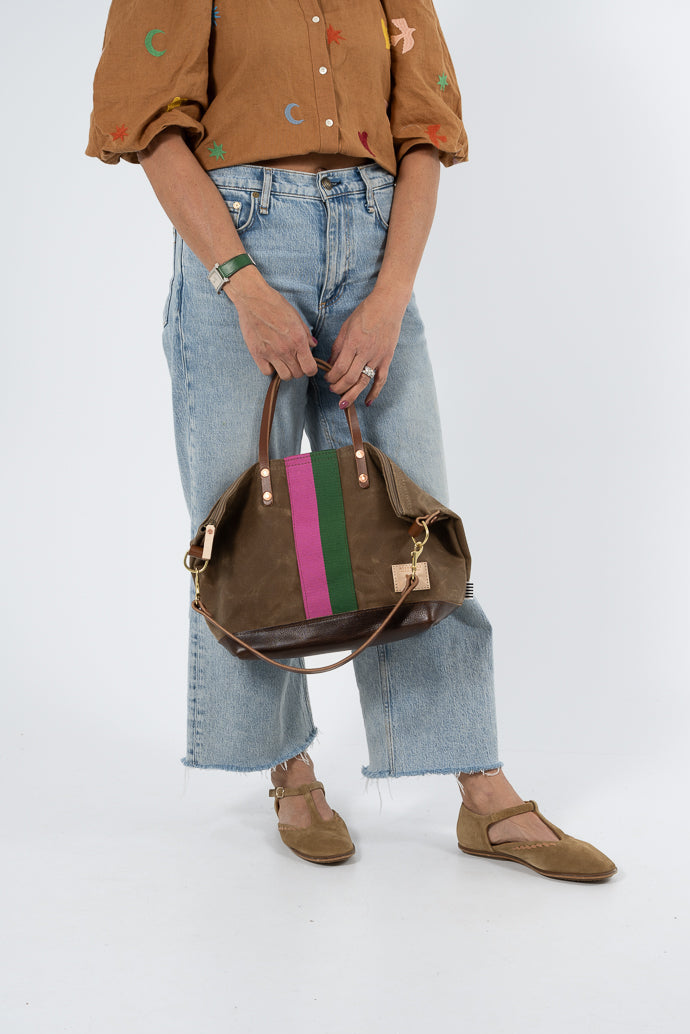 Limited Edition* Field Tan Wax Canvas Slouch Hobo with Pink & Green Webbing