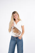 *Hair On Hide leather is exactly that—cowhide with the hair left intact. Soft, supple, and full of character, each hide showcases its natural markings, ensuring that no two are alike. Every bag is a one-of-a-kind creation, blending beauty and individuality.