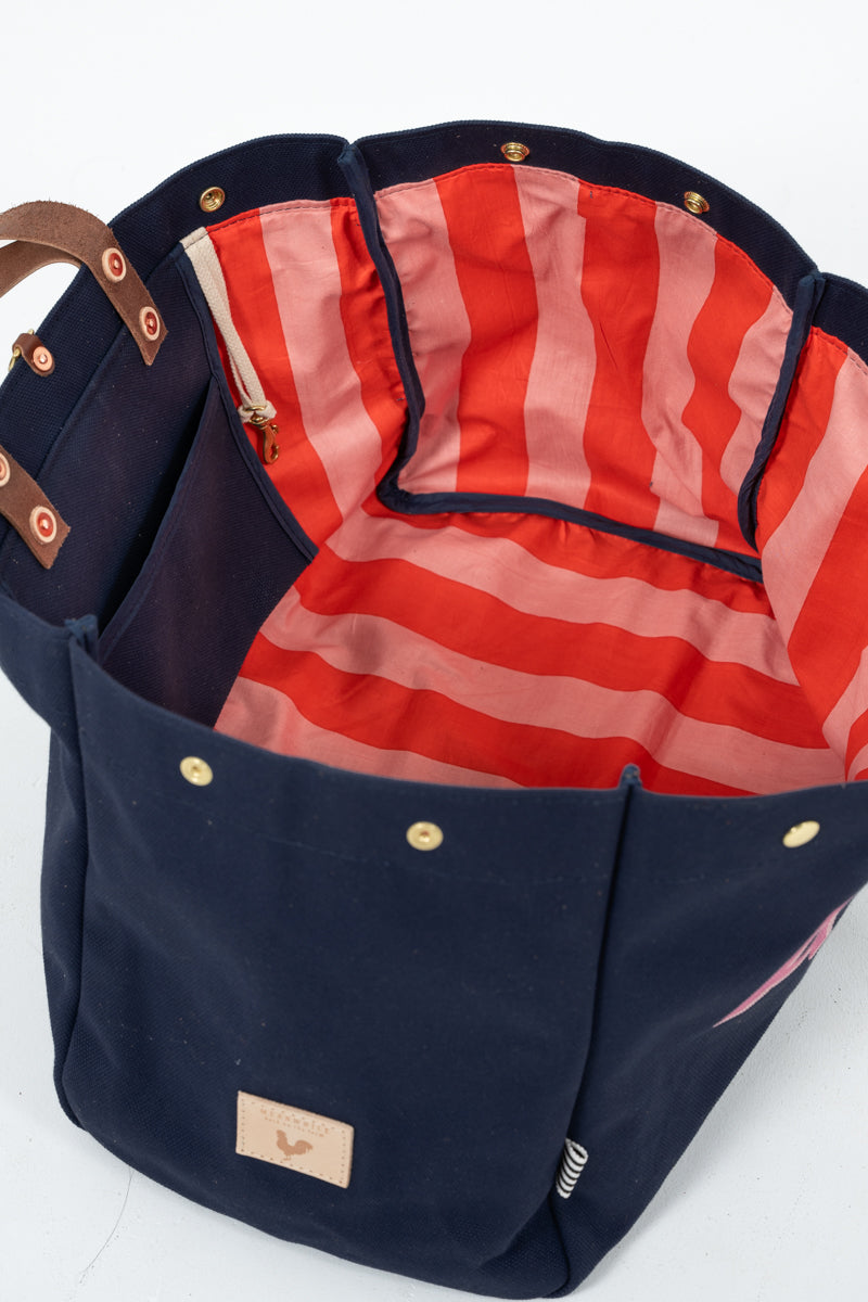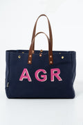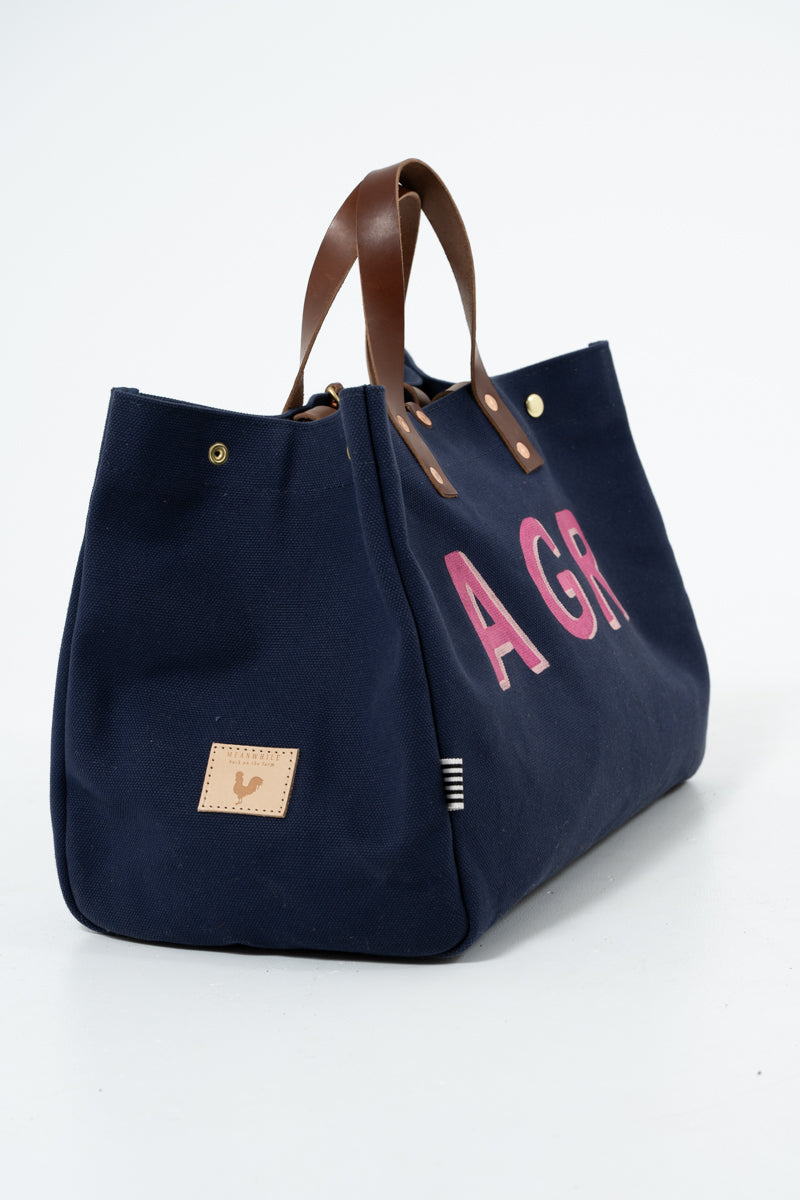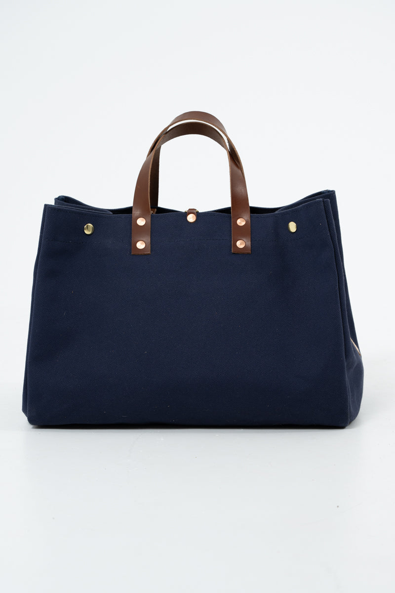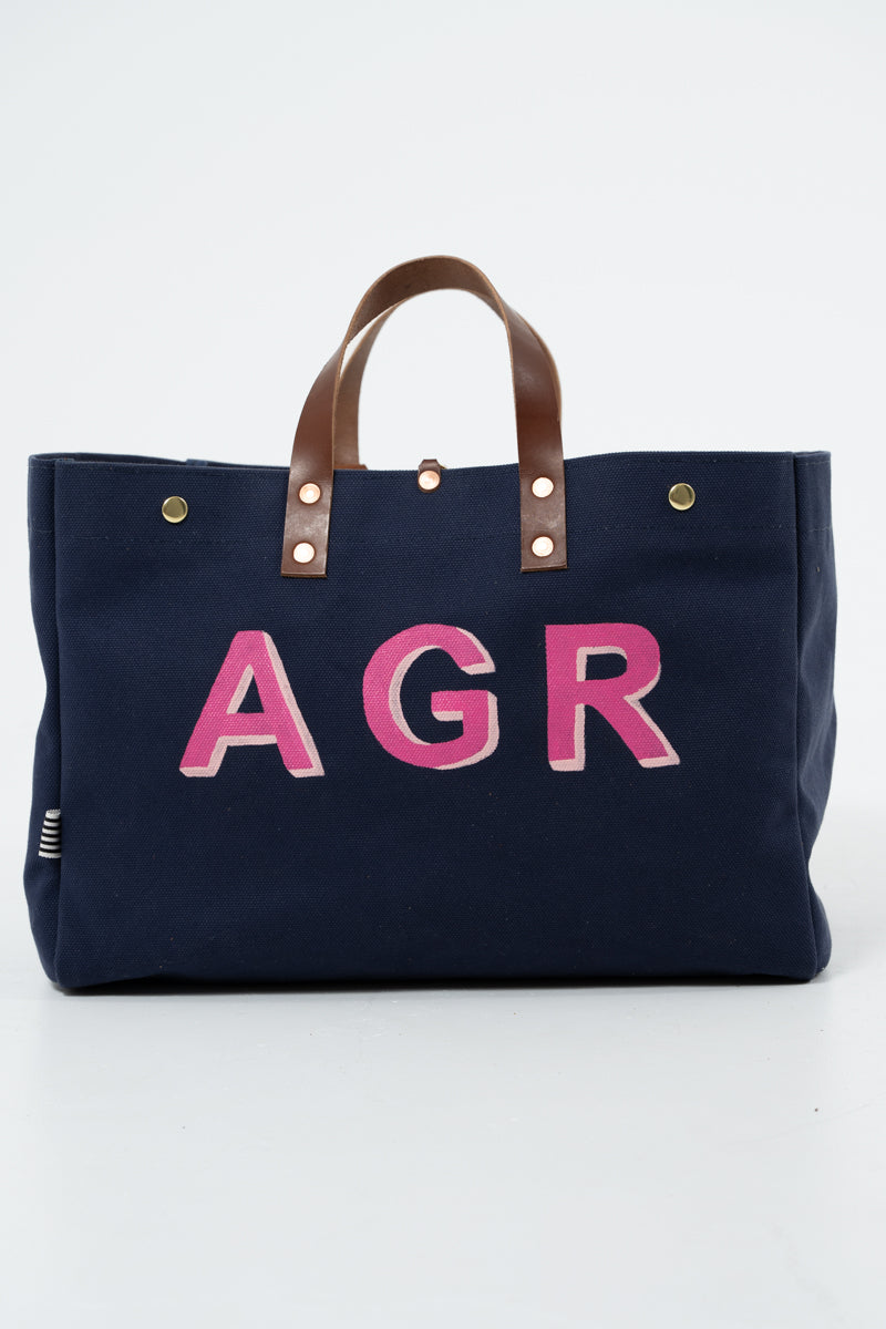 Limited Edition* Hand-Painted Navy XL Canvas Snap Tote