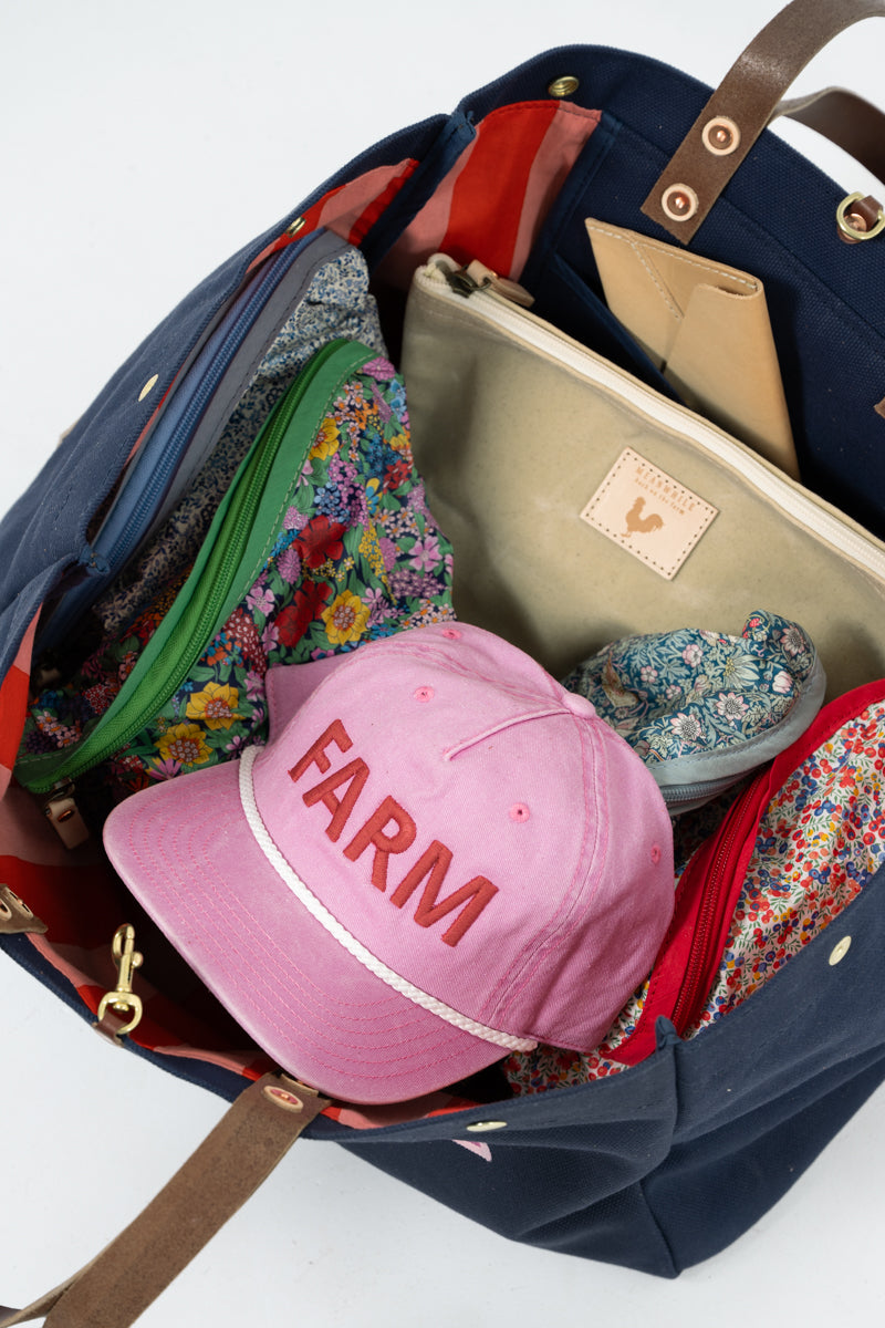 Our XL Snap Tote combines function, craftsmanship, and a touch of personalization. Designed and made right here in Virginia, this tote is crafted from thick duck canvas (not waxed), lined with a hand-blocked 2-toned striped cotton, and finished with a one-of-a-kind, hand-painted monogram. Fold and snap the top for a little extra enclosure, or leave it open when you need to pack it full.
