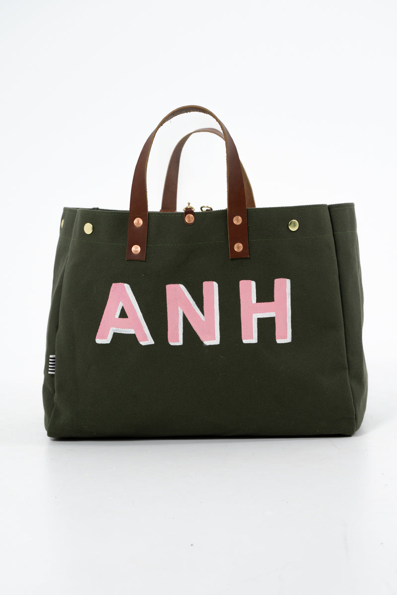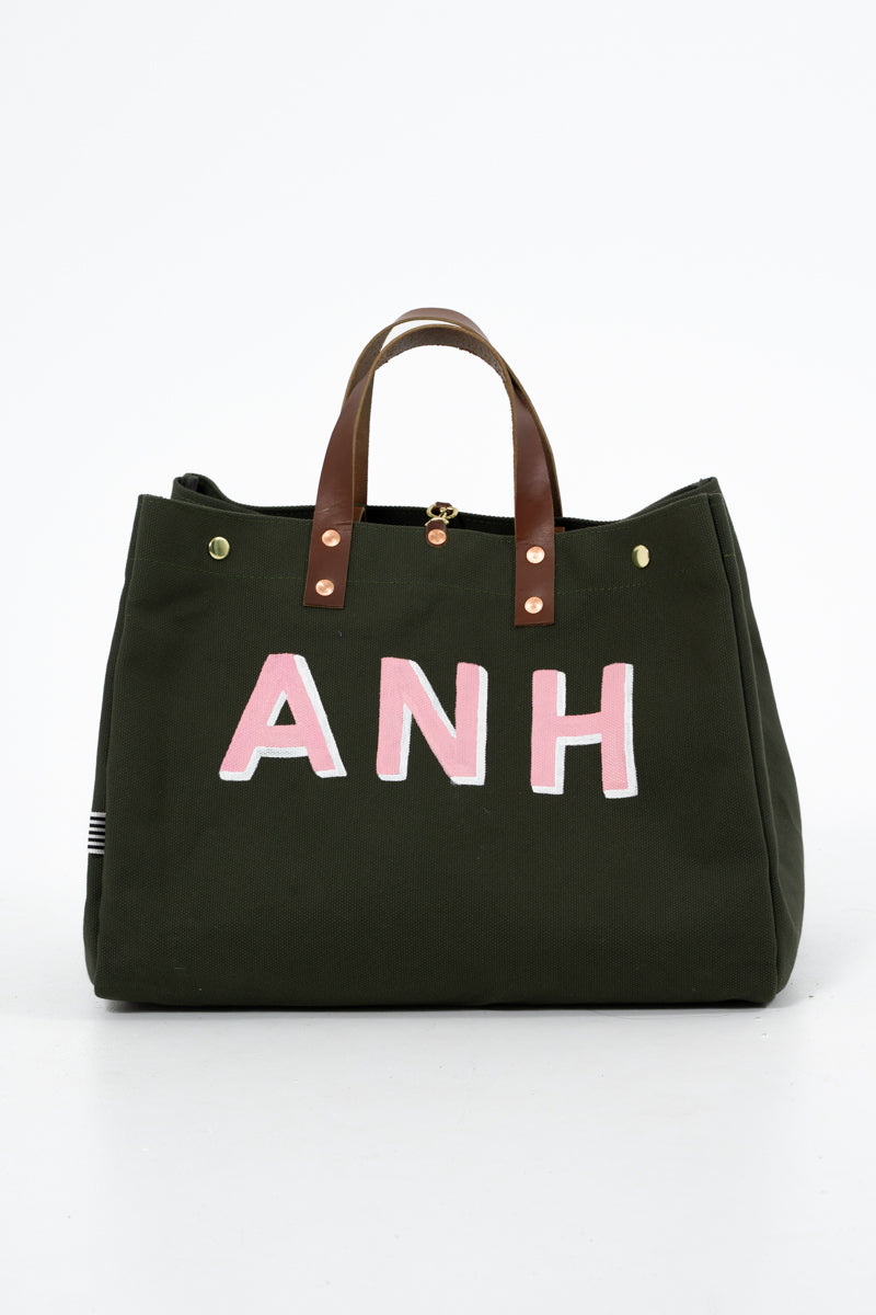 Limited Edition* Hand Painted Olive XL Canvas Snap Tote