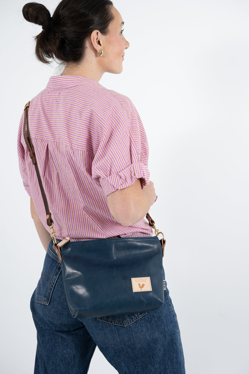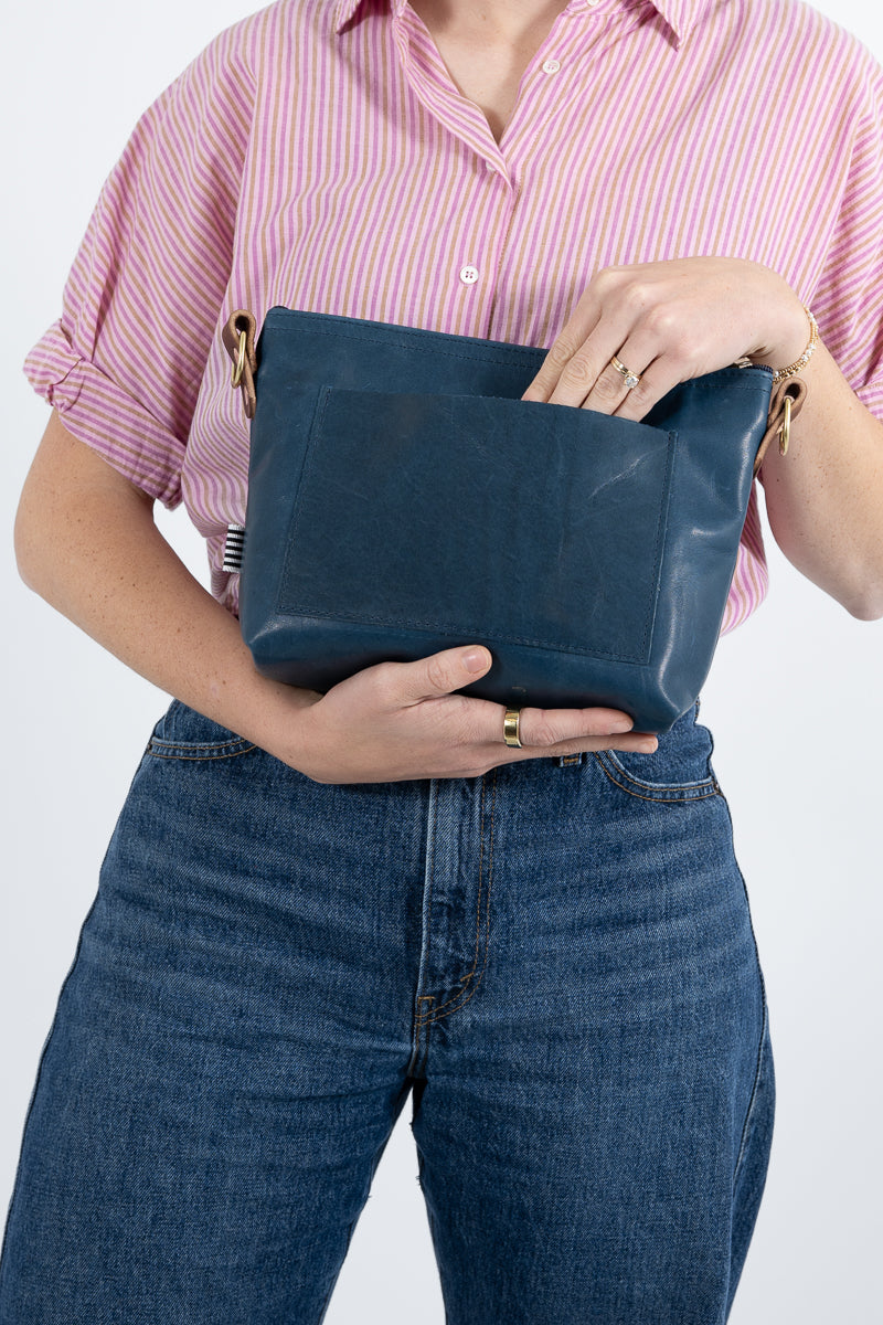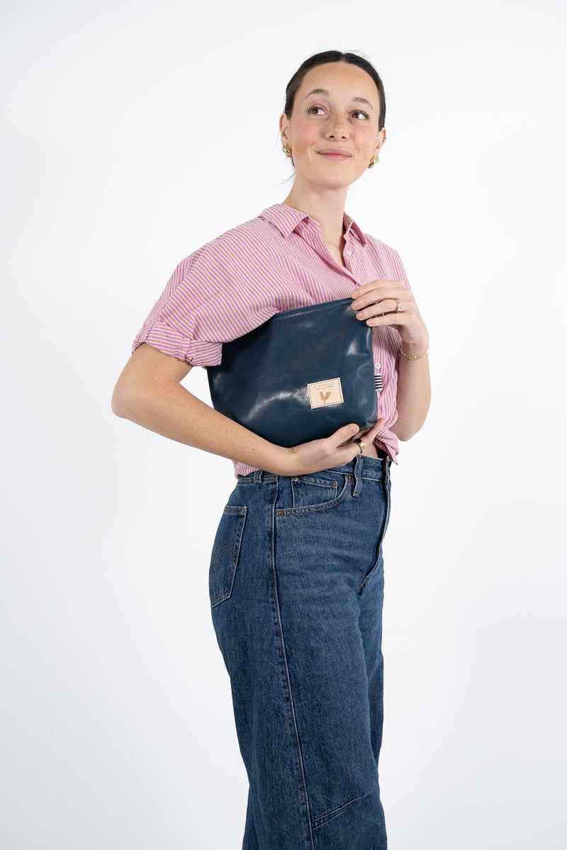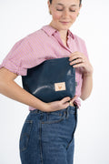 Less is more when it comes to cleaning your leather bag or canvas bag. Simply blot the undesired spot immediately with a dry white cloth to absorb the moisture. Avoid rubbing. If needed, mix mild dish soap with water (3:1 ratio) to blot the area. Keep in mind, the stain will look its worst on the day of the incident, but over time, the stain will disperse through the protein fibers and become part of the beautiful worn in look.