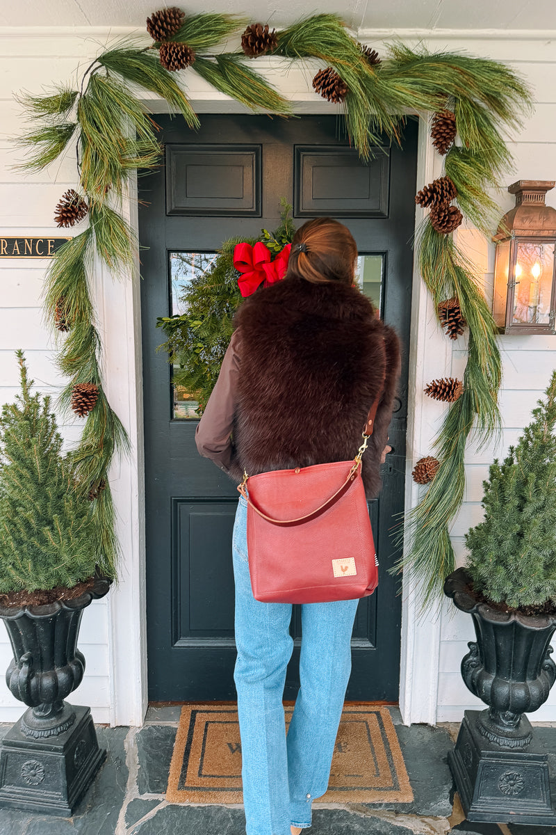 Less is more when it comes to cleaning your leather bag or canvas bag. Simply blot the undesired spot immediately with a dry white cloth to absorb the moisture. Avoid rubbing. If needed, mix mild dish soap with water (3:1 ratio) to blot the area. Keep in mind, the stain will look its worst on the day of the incident, but over time, the stain will disperse through the protein fibers and become part of the beautiful worn in look.