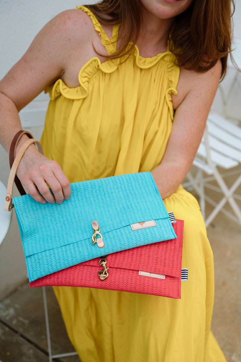 Less is more when it comes to cleaning your leather bag or canvas bag. Simply blot the undesired spot immediately with a dry white cloth to absorb the moisture. Avoid rubbing. If needed, mix mild dish soap with water (3:1 ratio) to blot the area. Keep in mind, the stain will look its worst on the day of the incident, but over time, the stain will disperse through the protein fibers and become part of the beautiful worn in look.