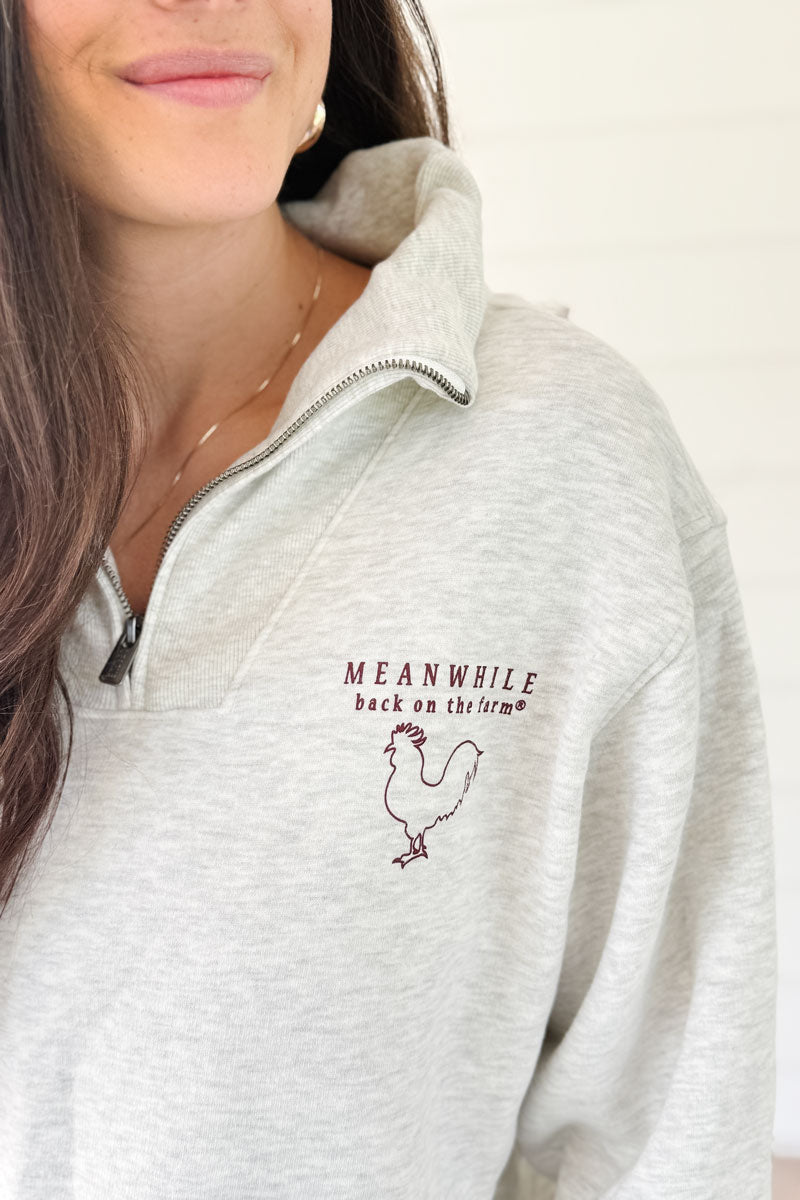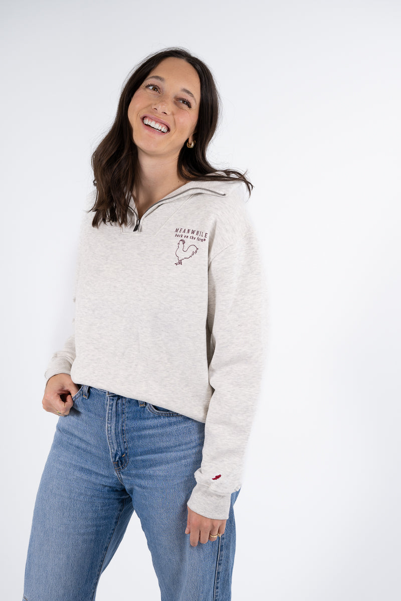 Meanwhile Quarter-Zip Oatmeal Sweatshirt with Maroon Logo