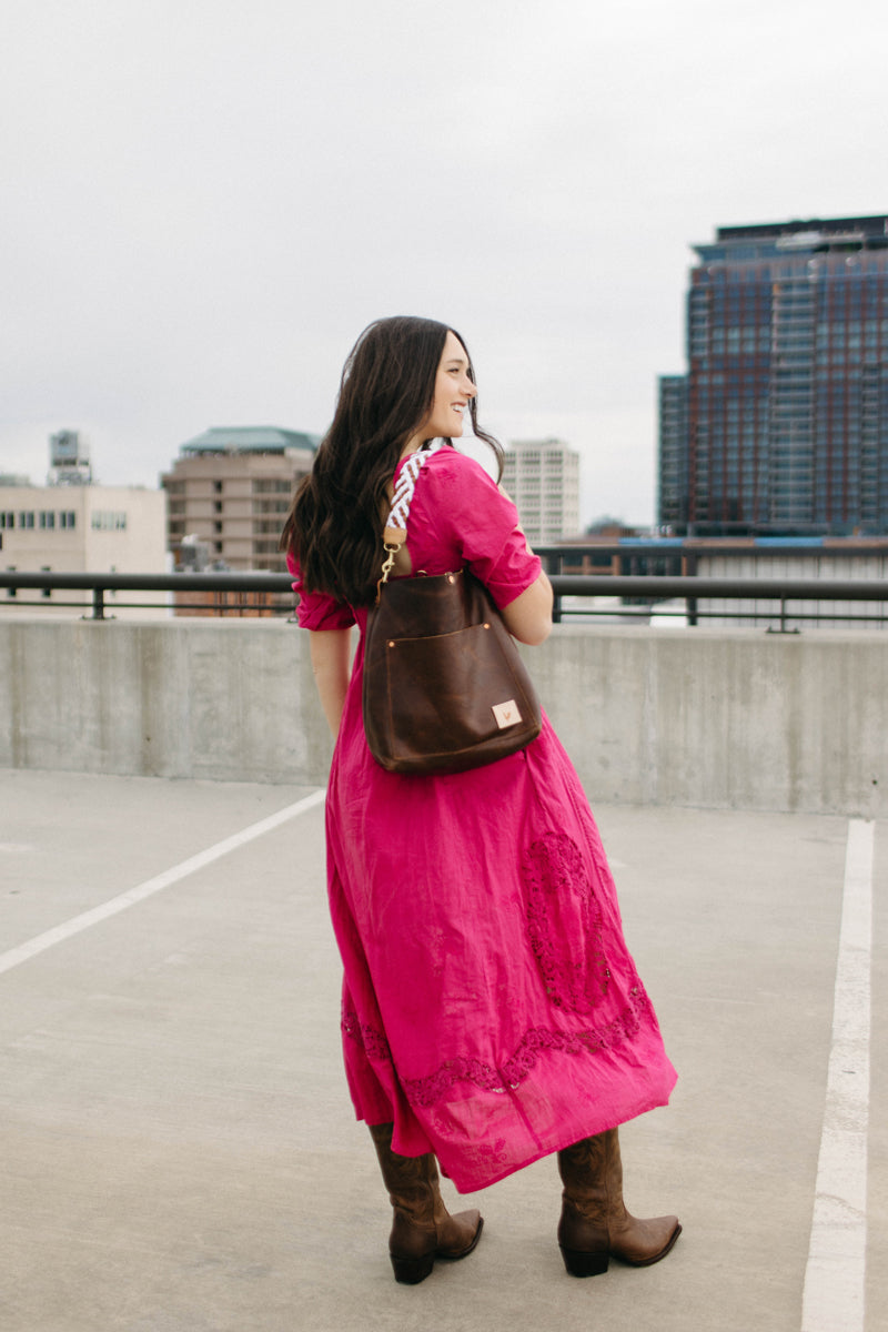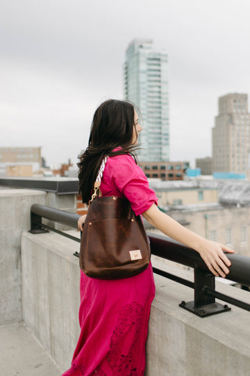 Less is more when it comes to cleaning your leather bag or canvas bag. Simply blot the undesired spot immediately with a dry white cloth to absorb the moisture. Avoid rubbing. If needed, mix mild dish soap with water (3:1 ratio) to blot the area. Keep in mind, the stain will look its worst on the day of the incident, but over time, the stain will disperse through the protein fibers and become part of the beautiful worn in look.