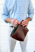 Our classic men’s dopp kit—refreshed with new leather, an updated lining.