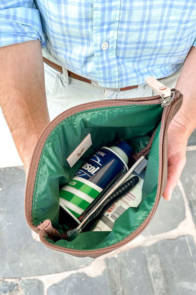 Made for real use, it keeps your shaving cream, razors, and deodorant organized on the go, and doubles as a golf-day catch-all for balls, tees, and your rangefinder.