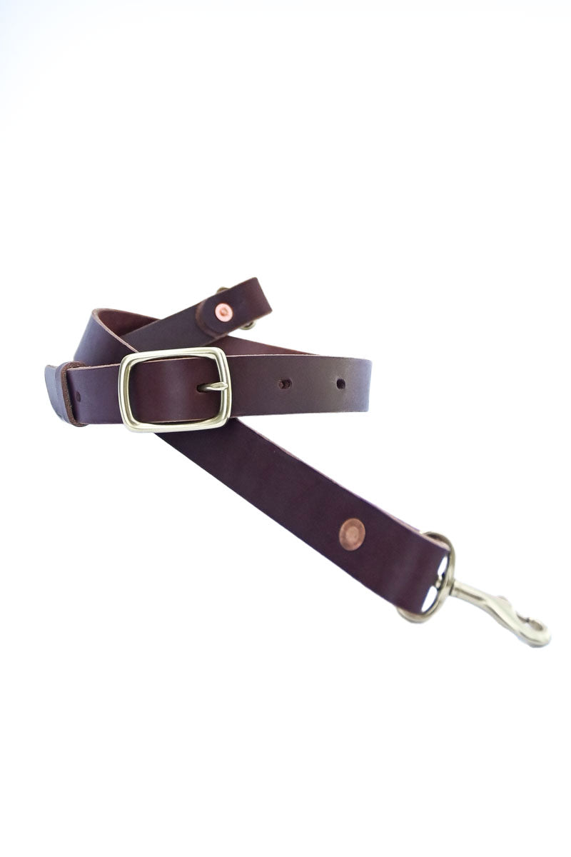 **English Bridle leather. This leather is created in a 150 year old U.S. Tannery using ancient hand processing techniques and vegetable extracts. With regular use, your straps will become soft and age gracefully, developing a rich patina and distinctive character.