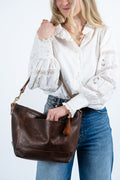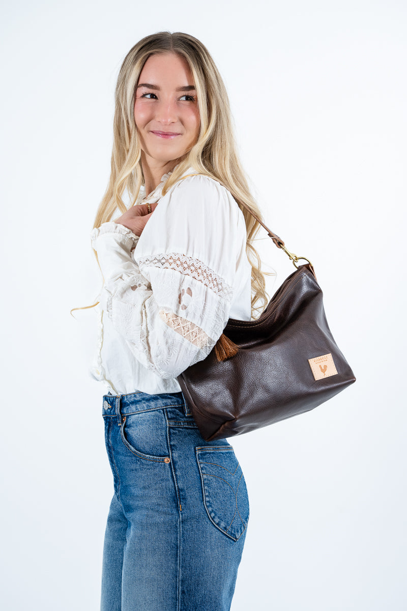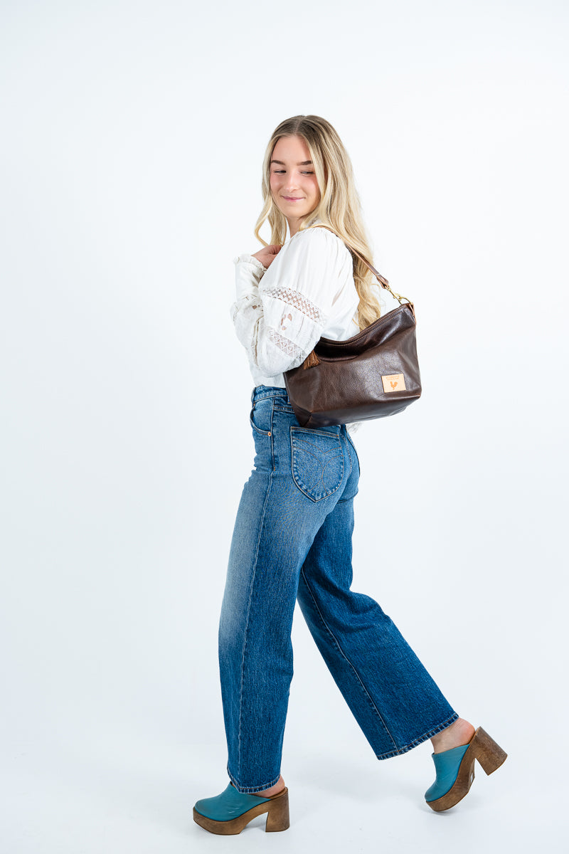 Less is more when it comes to cleaning your leather bag or canvas bag. Simply blot the undesired spot immediately with a dry white cloth to absorb the moisture. Avoid rubbing. If needed, mix mild dish soap with water (3:1 ratio) to blot the area. Keep in mind, the stain will look its worst on the day of the incident, but over time, the stain will disperse through the protein fibers and become part of the beautiful worn in look.