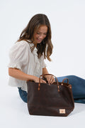 Less is more when it comes to cleaning your leather bag or canvas bag. Simply blot the undesired spot immediately with a dry white cloth to absorb the moisture. Avoid rubbing. If needed, mix mild dish soap with water (3:1 ratio) to blot the area. Keep in mind, the stain will look its worst on the day of the incident, but over time, the stain will disperse through the protein fibers and become part of the beautiful worn in look.