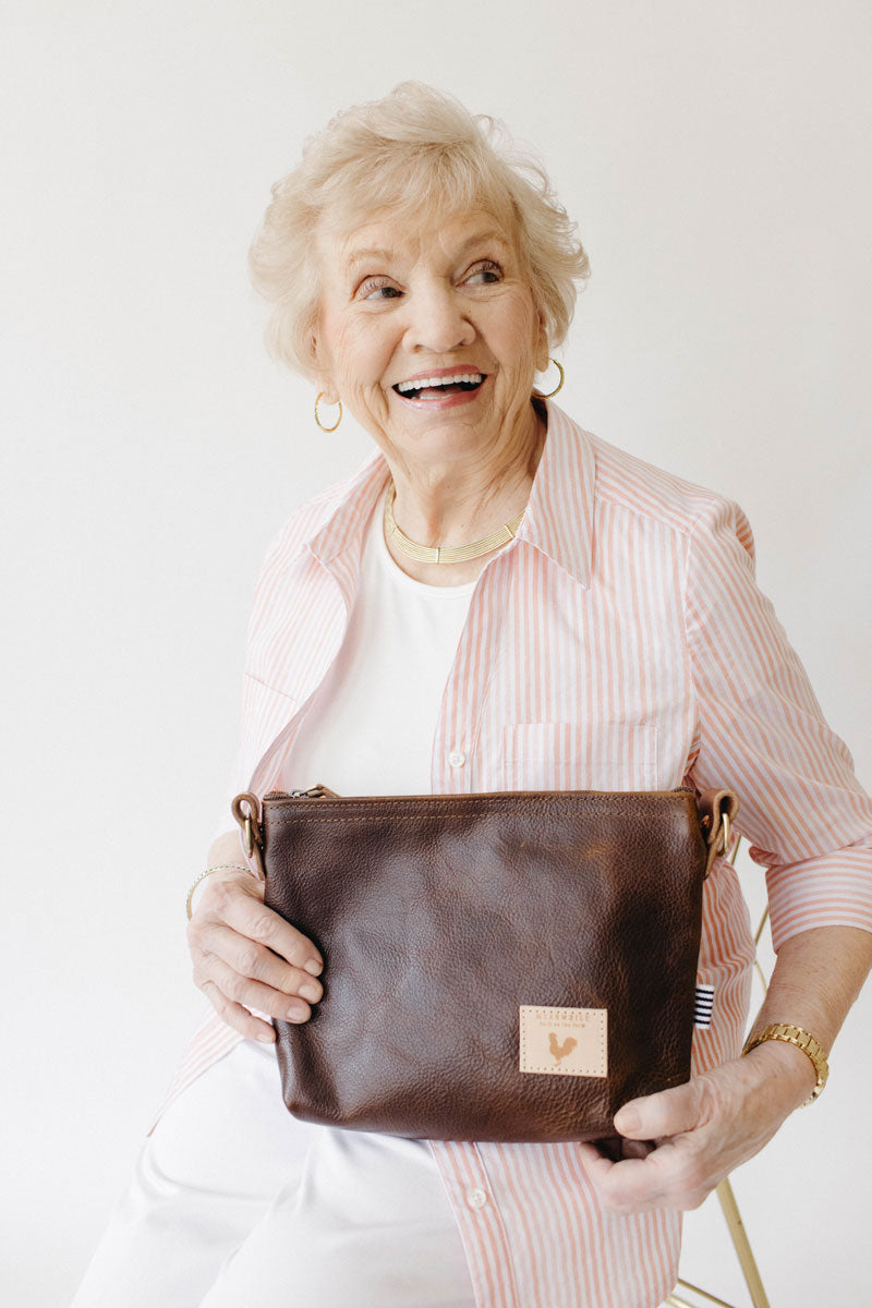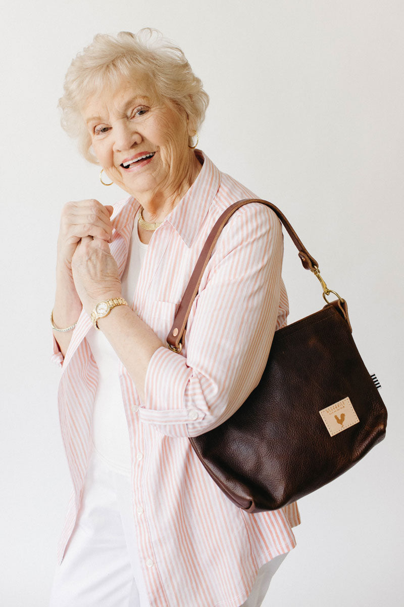Less is more when it comes to cleaning your leather bag or canvas bag. Simply blot the undesired spot immediately with a dry white cloth to absorb the moisture. Avoid rubbing. If needed, mix mild dish soap with water (3:1 ratio) to blot the area. Keep in mind, the stain will look its worst on the day of the incident, but over time, the stain will disperse through the protein fibers and become part of the beautiful worn in look.