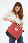 Less is more when it comes to cleaning your leather bag or canvas bag. Simply blot the undesired spot immediately with a dry white cloth to absorb the moisture. Avoid rubbing. If needed, mix mild dish soap with water (3:1 ratio) to blot the area. Keep in mind, the stain will look its worst on the day of the incident, but over time, the stain will disperse through the protein fibers and become part of the beautiful worn in look.