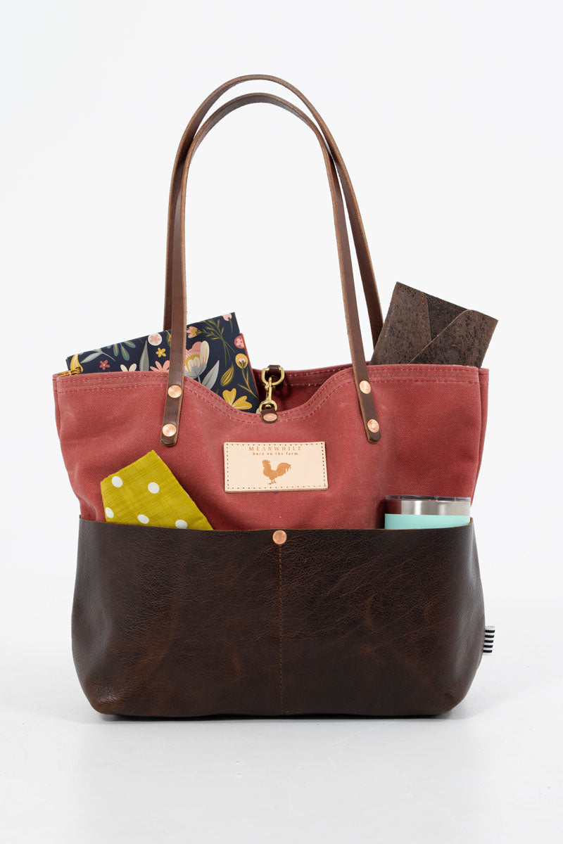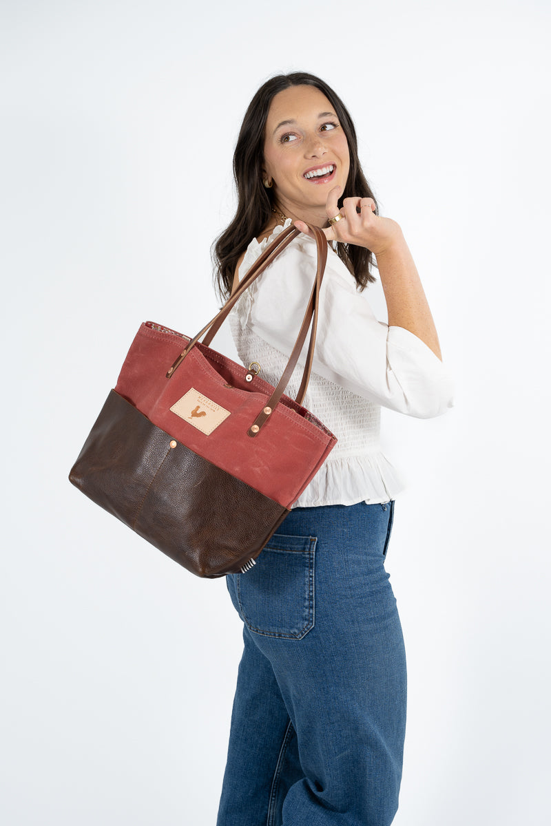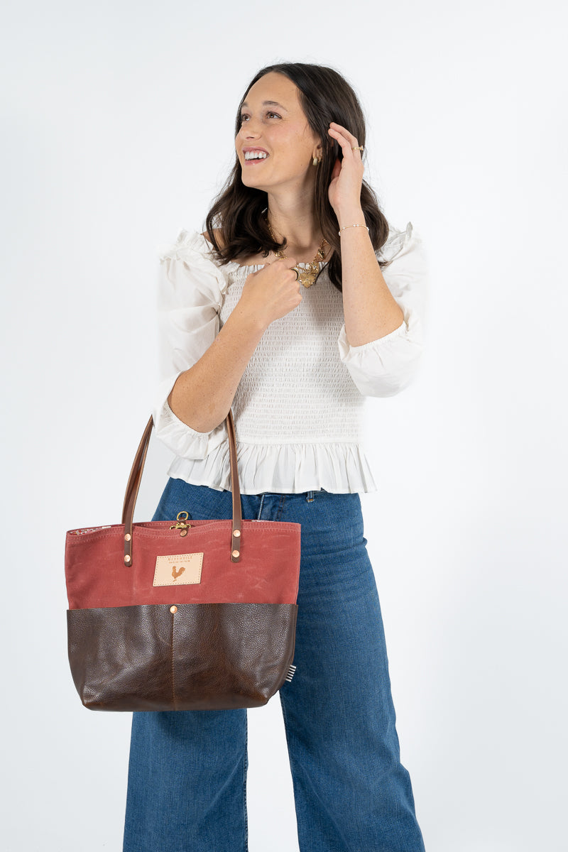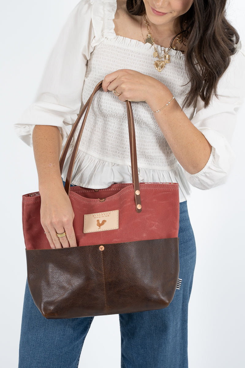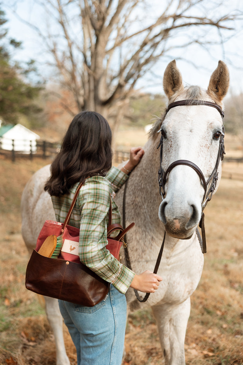Less is more when it comes to cleaning your leather bag or canvas bag. Simply blot the undesired spot immediately with a dry white cloth to absorb the moisture. Avoid rubbing. If needed, mix mild dish soap with water (3:1 ratio) to blot the area. Keep in mind, the stain will look its worst on the day of the incident, but over time, the stain will disperse through the protein fibers and become part of the beautiful worn in look.