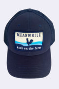 Navy Trucker Hat with Patch for Meanwhile Back on the Farm