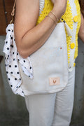 Playful yet timeless, the Black Dot Cotton Scarf adds a hint of retro charm to your favorite bag. With bold black polka dots on a soft neutral background, it's the perfect mix of fun and effortless style.