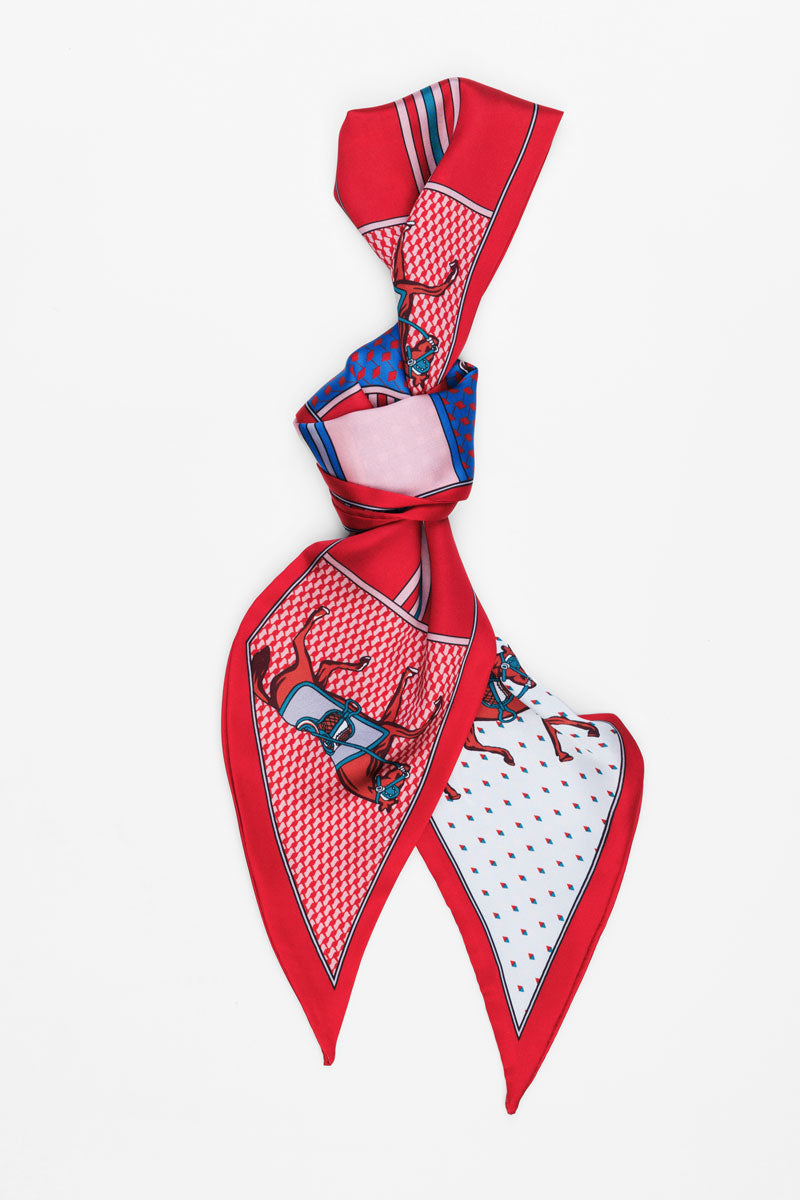 Embrace equestrian elegance with this stunning scarf, featuring beautifully detailed horse designs. It's the perfect way to add a splash of cheer and color to your favorite bag. Tie or wrap them around your bag's handles for a touch of personality or to accentuate a monochromatic look – these delightful scarves will charm their way into your hearts and onto your bags.