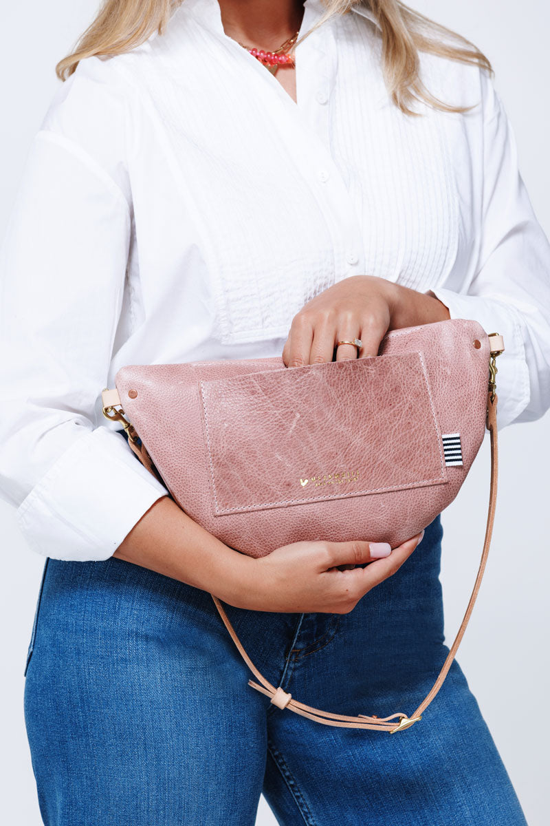 *Rose Leather: Soft, supple, and gracefully hued, this leather boasts a uniquely beautiful 'tipped' grain giving it contrast in color across the peaks and valleys of its surface. The leather’s soft touch adds comfort to its charm, while the natural grain and unique tones give it a character that's as distinctive as it is lovely.